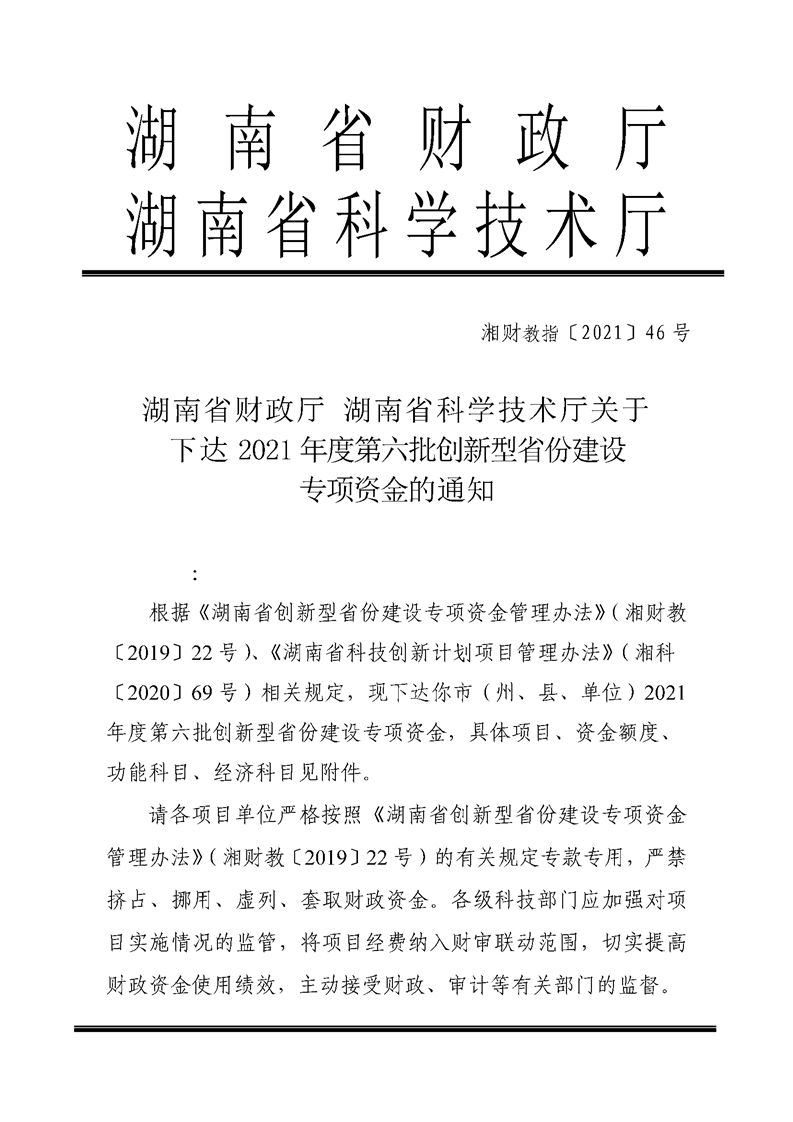 2021年度第六批创新型省份建设专项资金项目经费明细表-市州(分发)(临湘市)1.xls