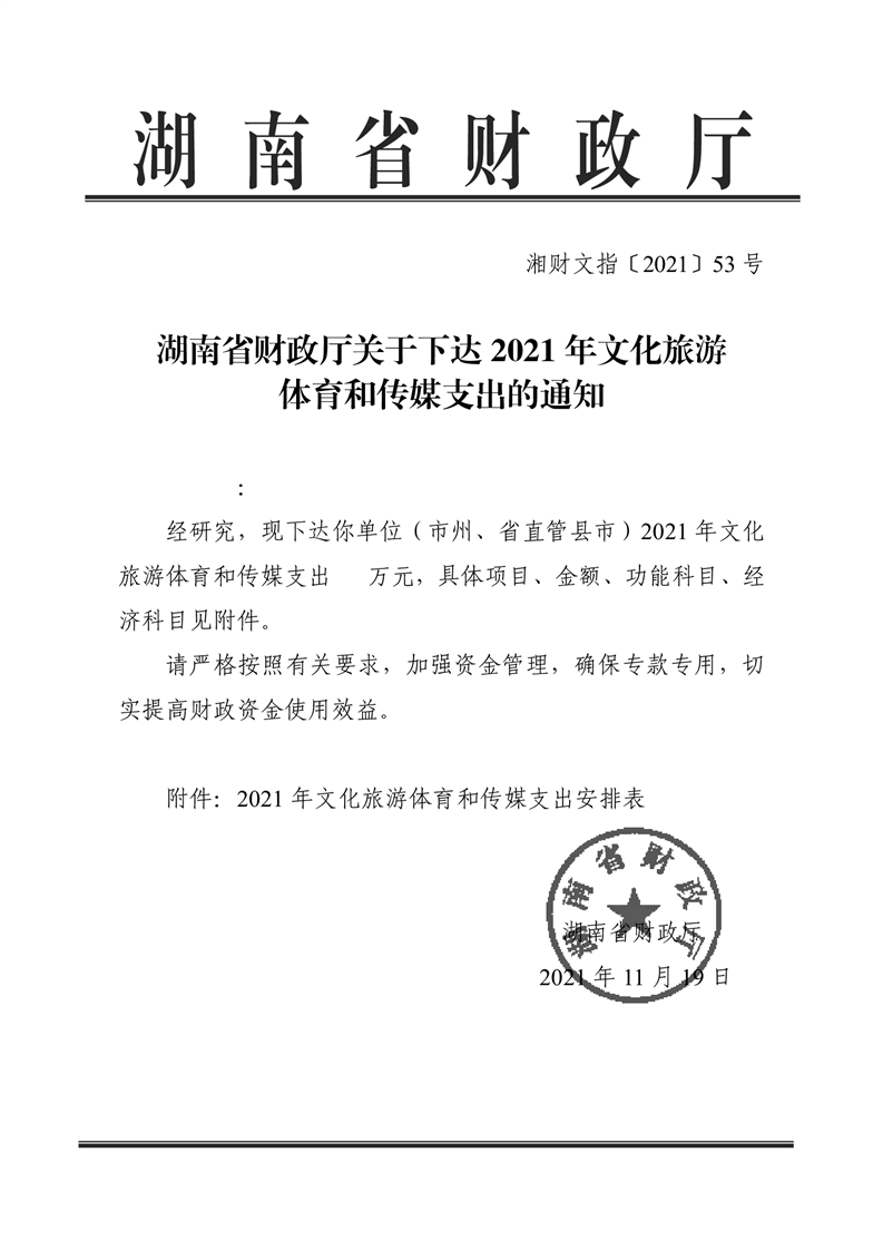 关于下达2021年文化旅游体育和传媒支出的通知