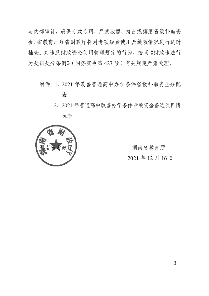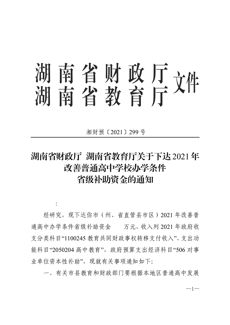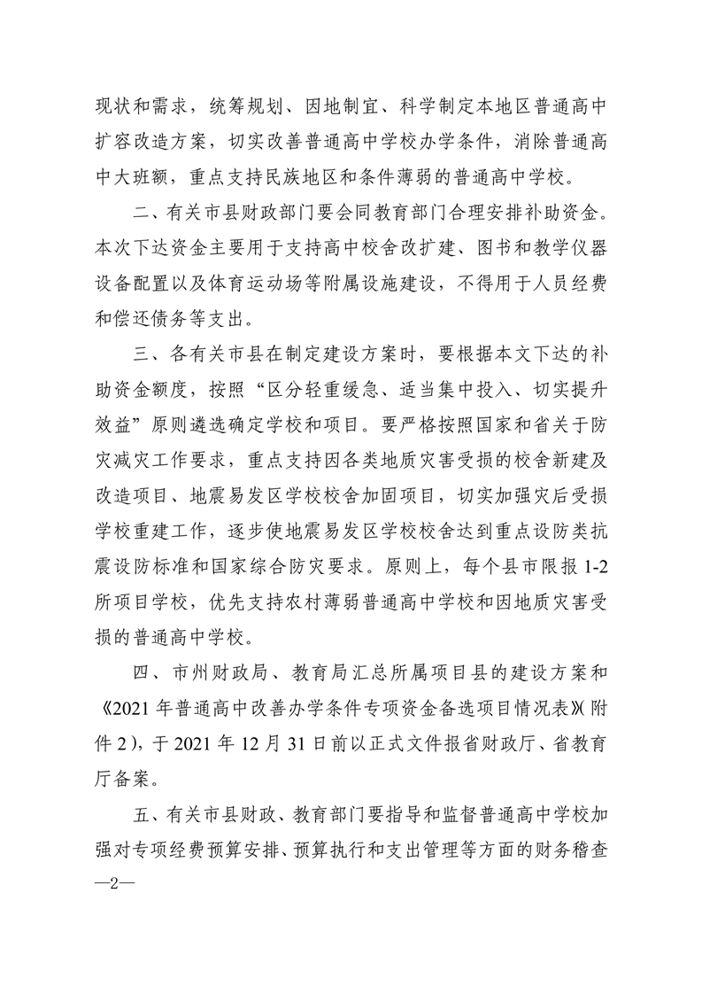 关于下达2021年改善普通高中学校办学条件省级补助资金的通知