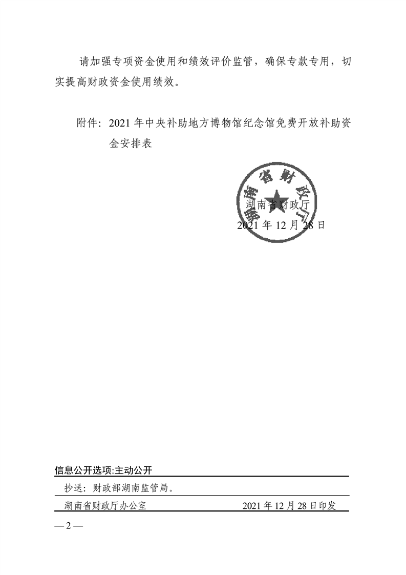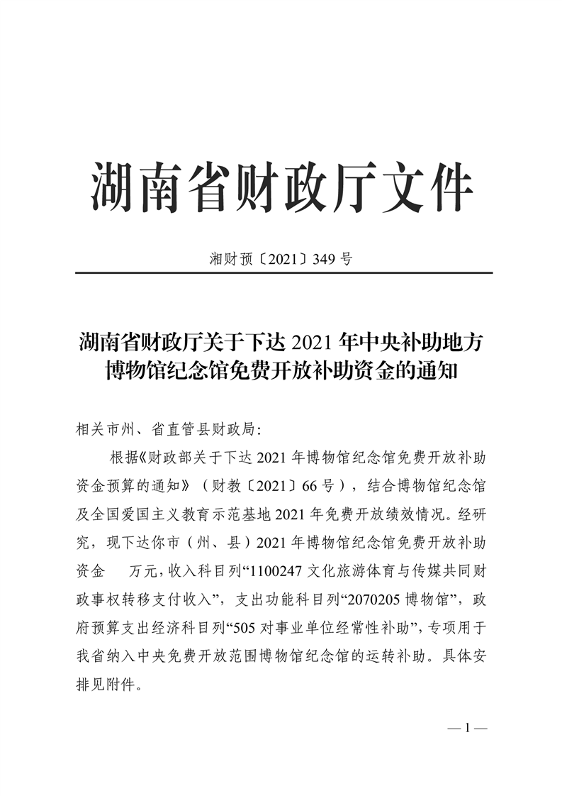 关于下达2021年中央补助地方博物纪念馆免费开放补助资金的通知
