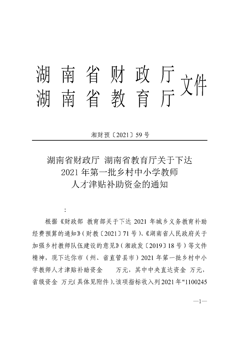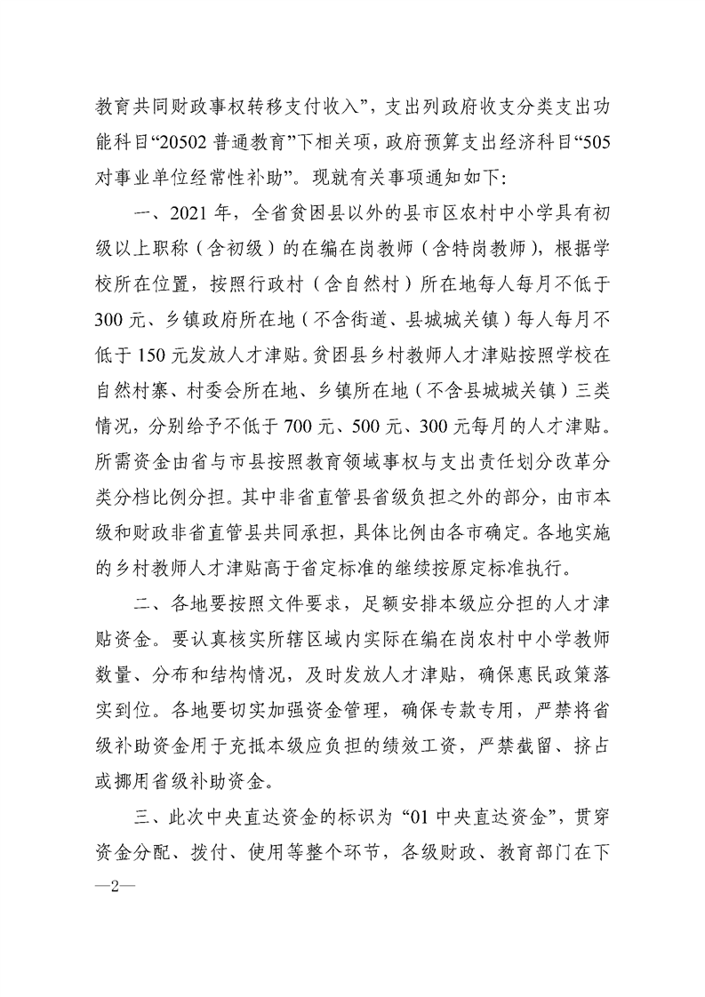 关于下达2021年第一批乡村中小学教师人才尽头补助资金的通知