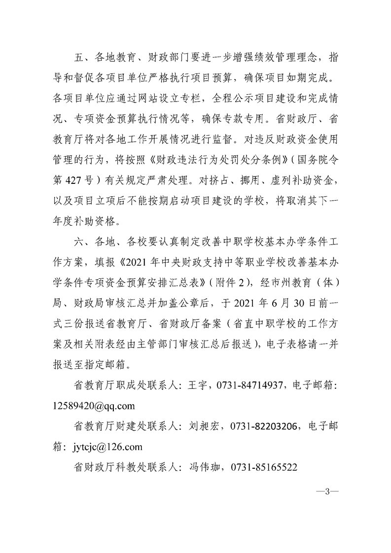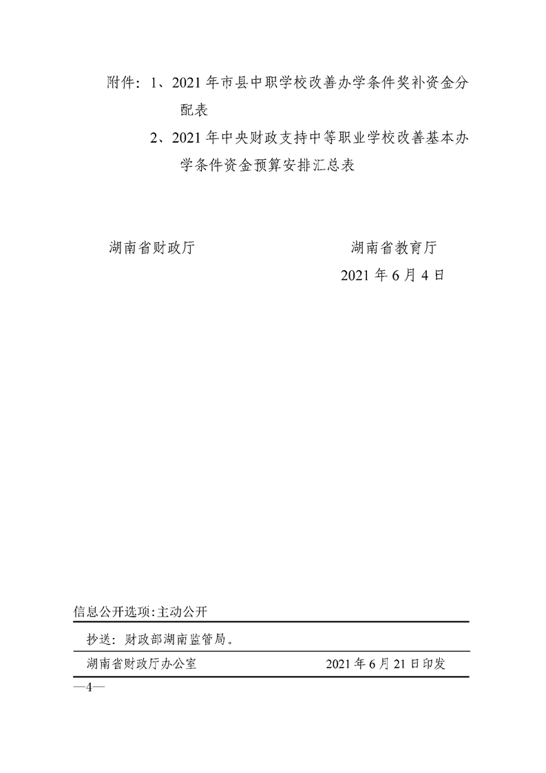 湖南省财政厅 湖南省教育厅关于下达2021年市县中职学校改善办学条件中央资金的通知