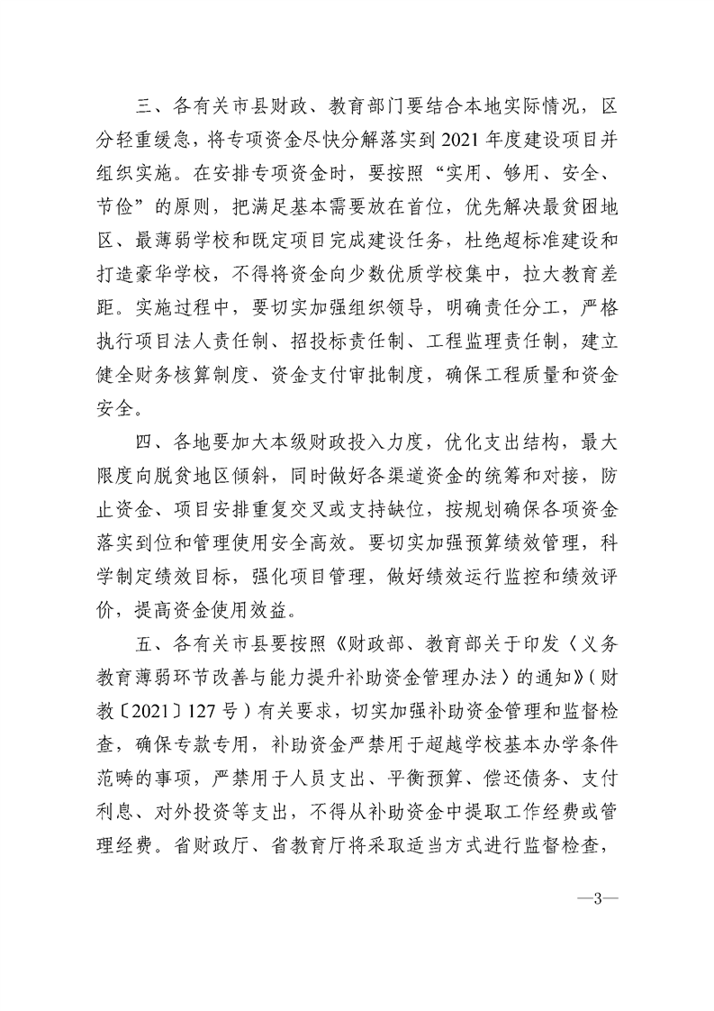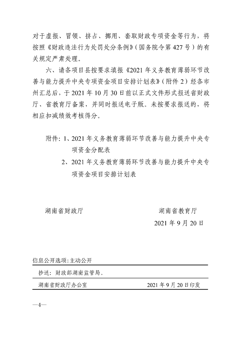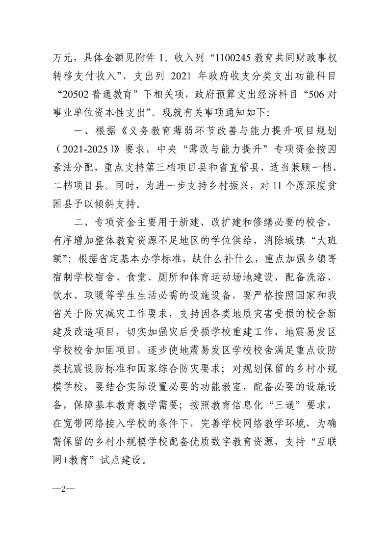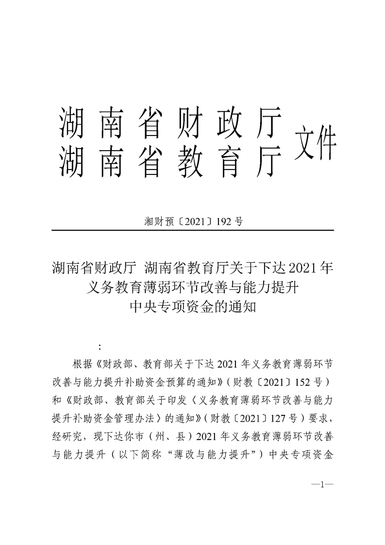 湖南省财政厅_湖南省教育厅关于下达2021年义务教育薄弱环节改善与能力提升中央专项资金的通知