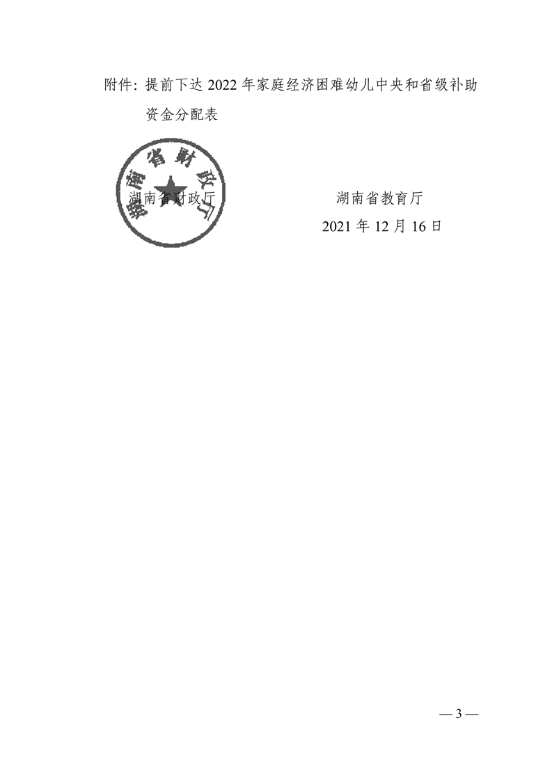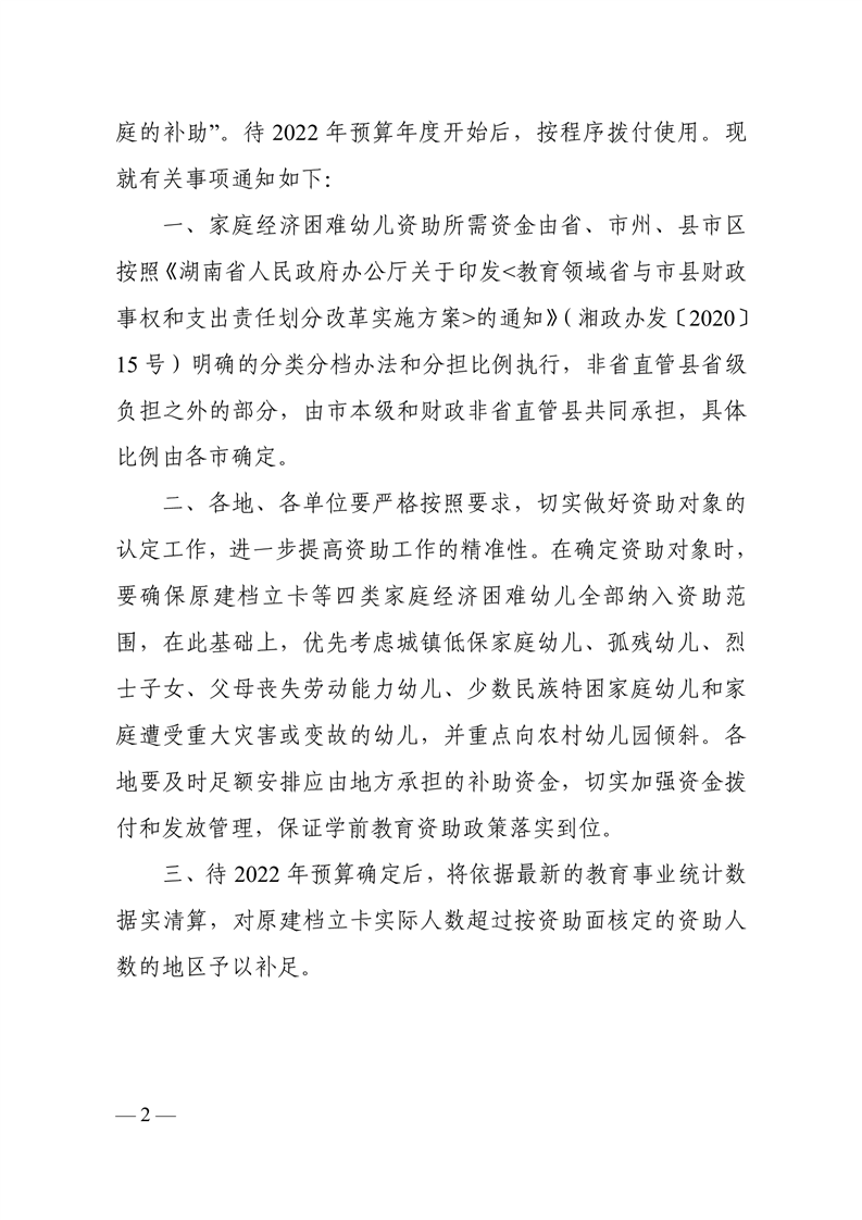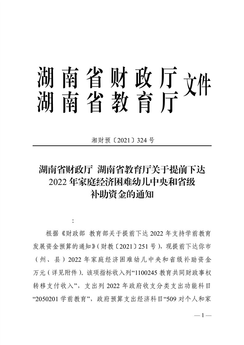 关于提前下达2022年家庭经济困难幼儿中央和省级补助资金的通知
