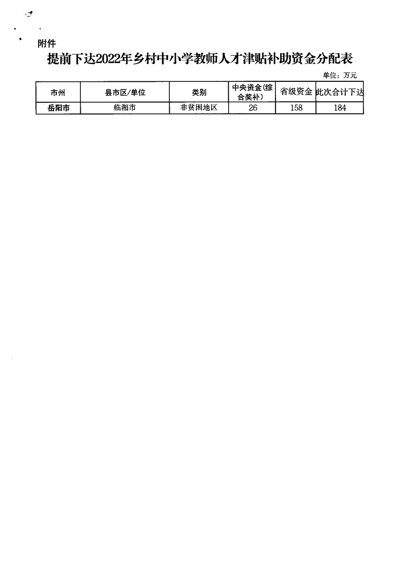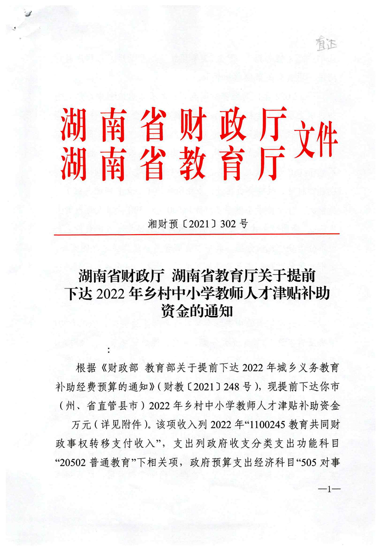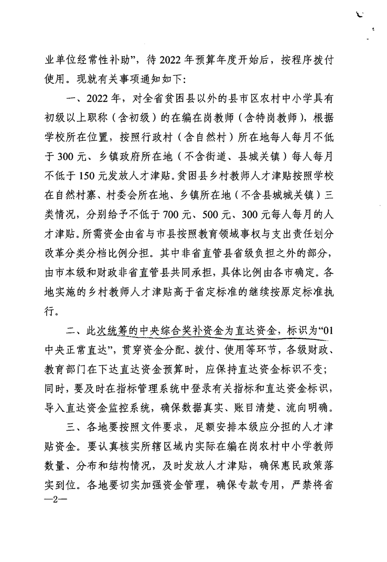 关于提前下达2022年乡村中小学教师人才津补贴补助资金的通知