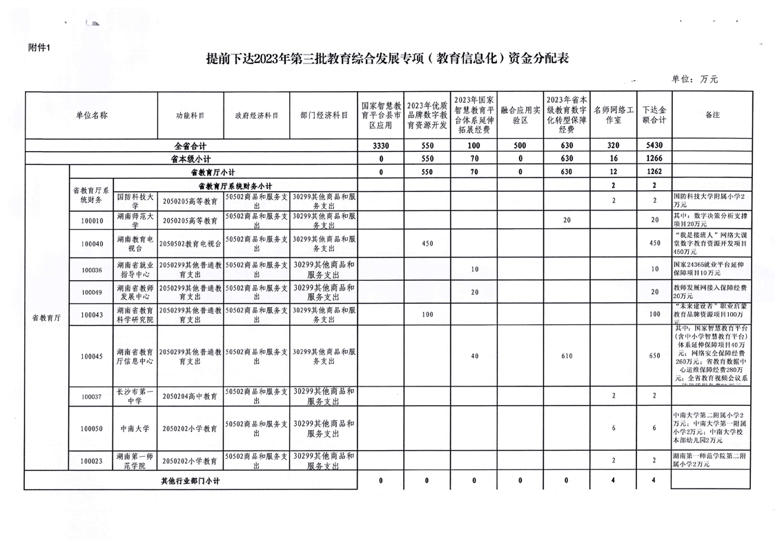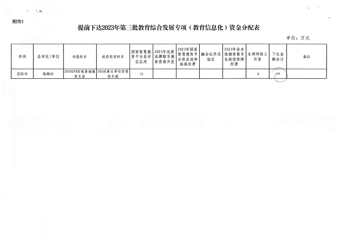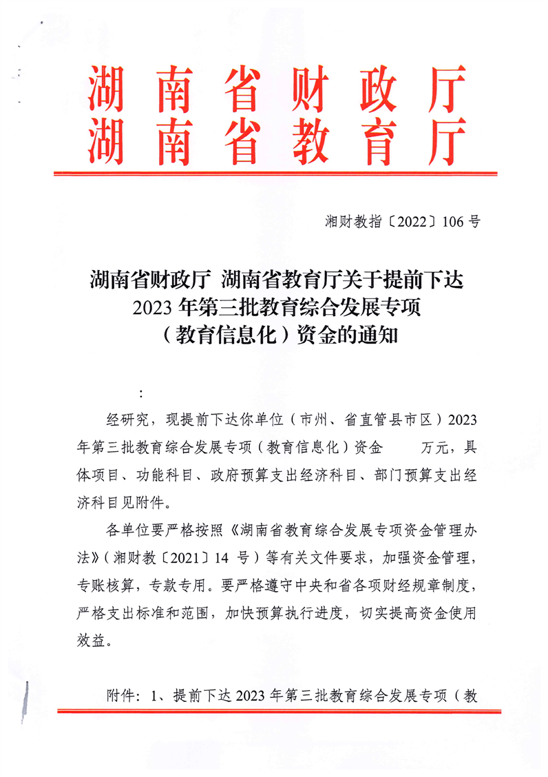 关于提前下达2023年第三批教育综合发展专项(教育信息化)资金的通知