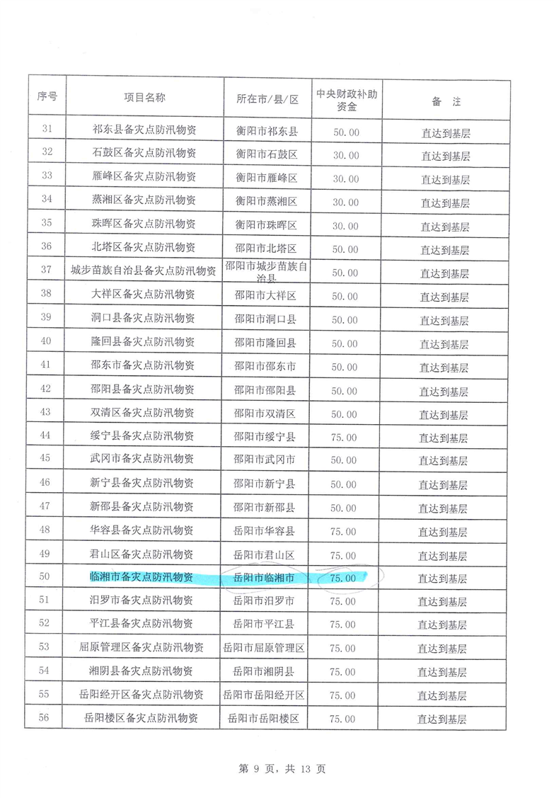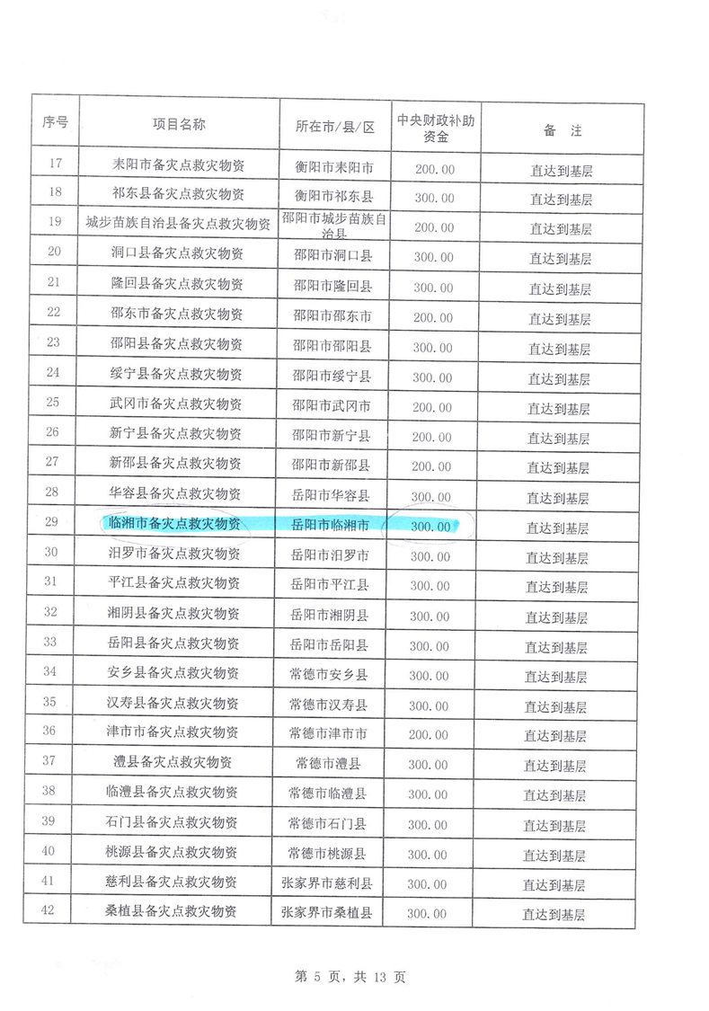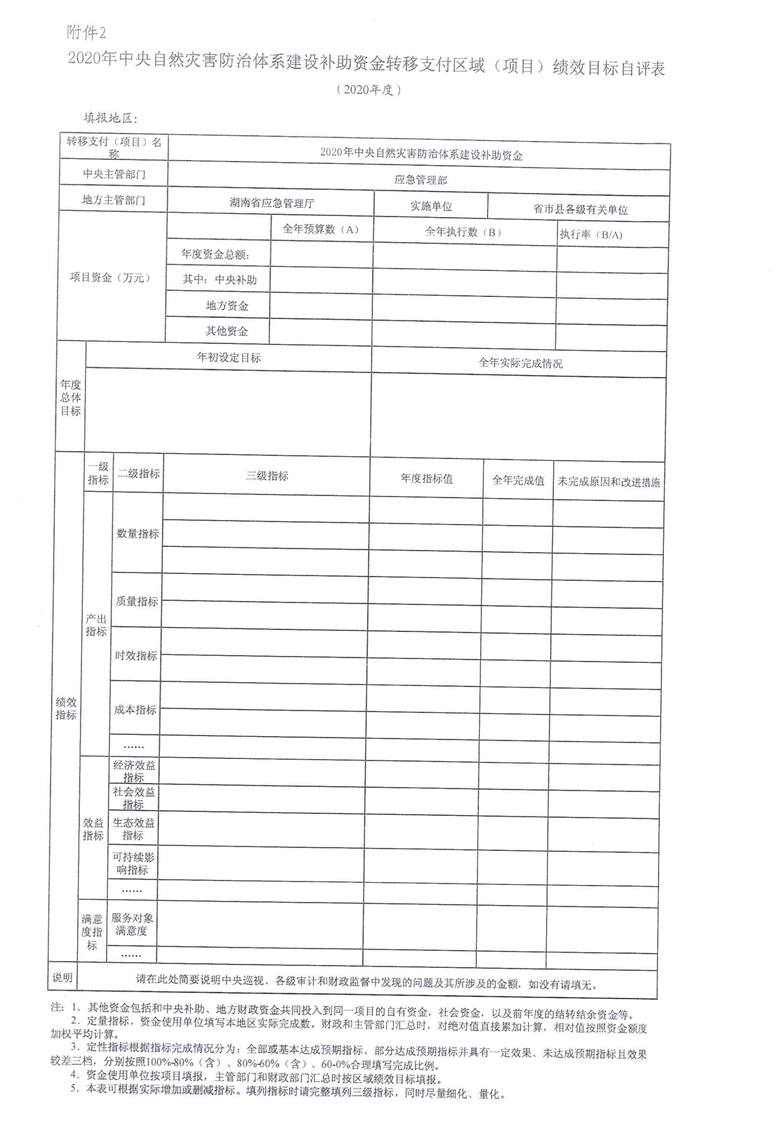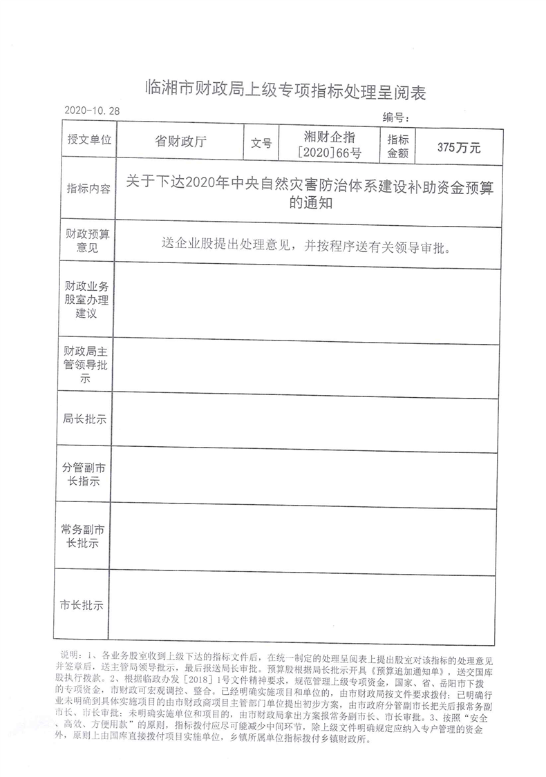 湖南省财政厅关于下达2020年中央自然灾害防治体系建设补助资金预算的通知
