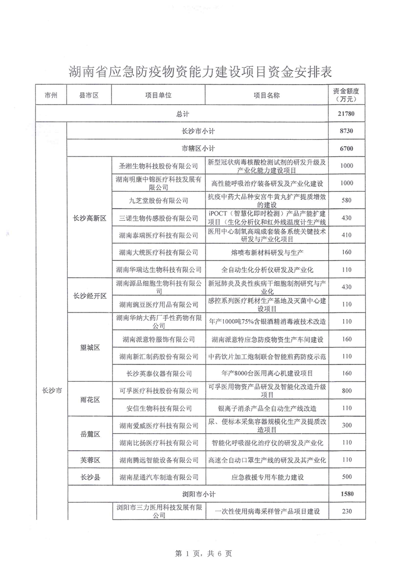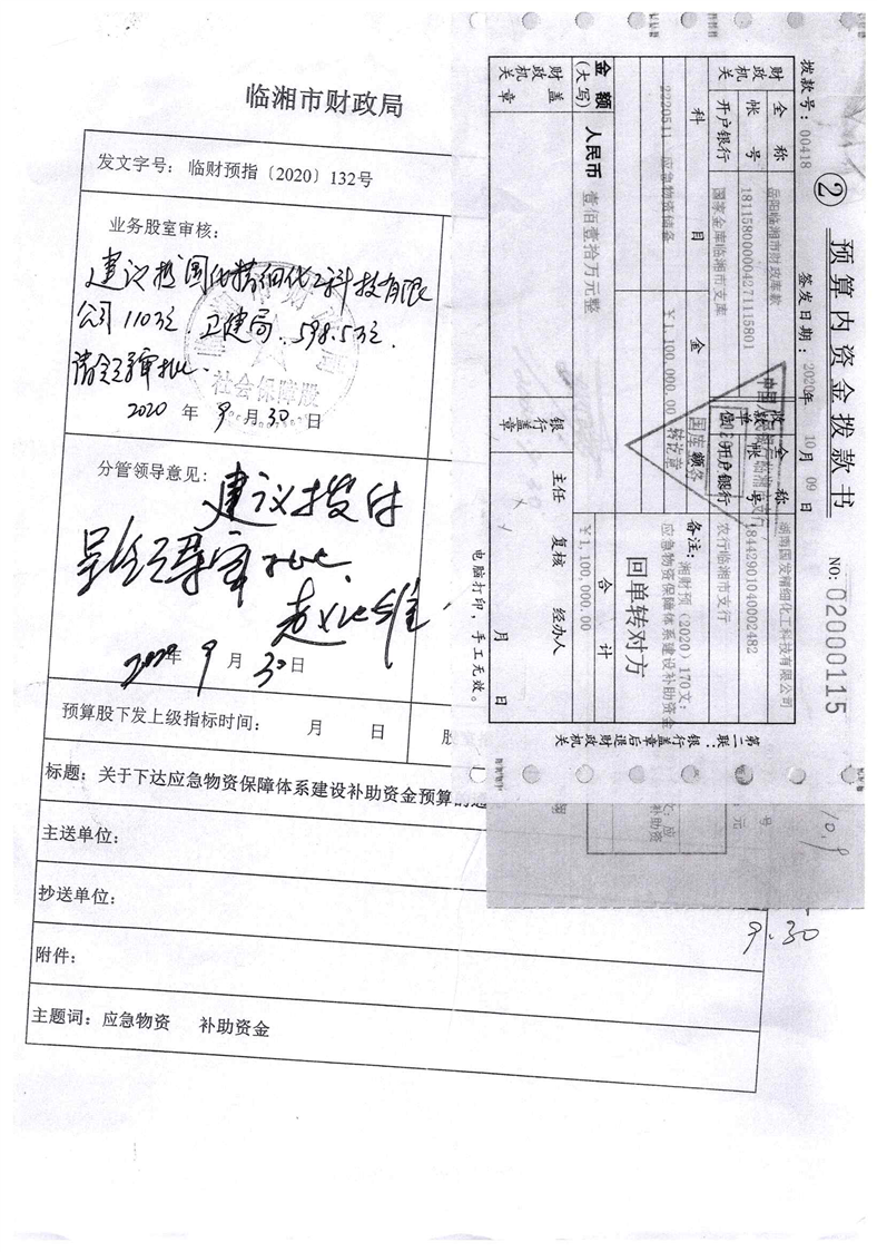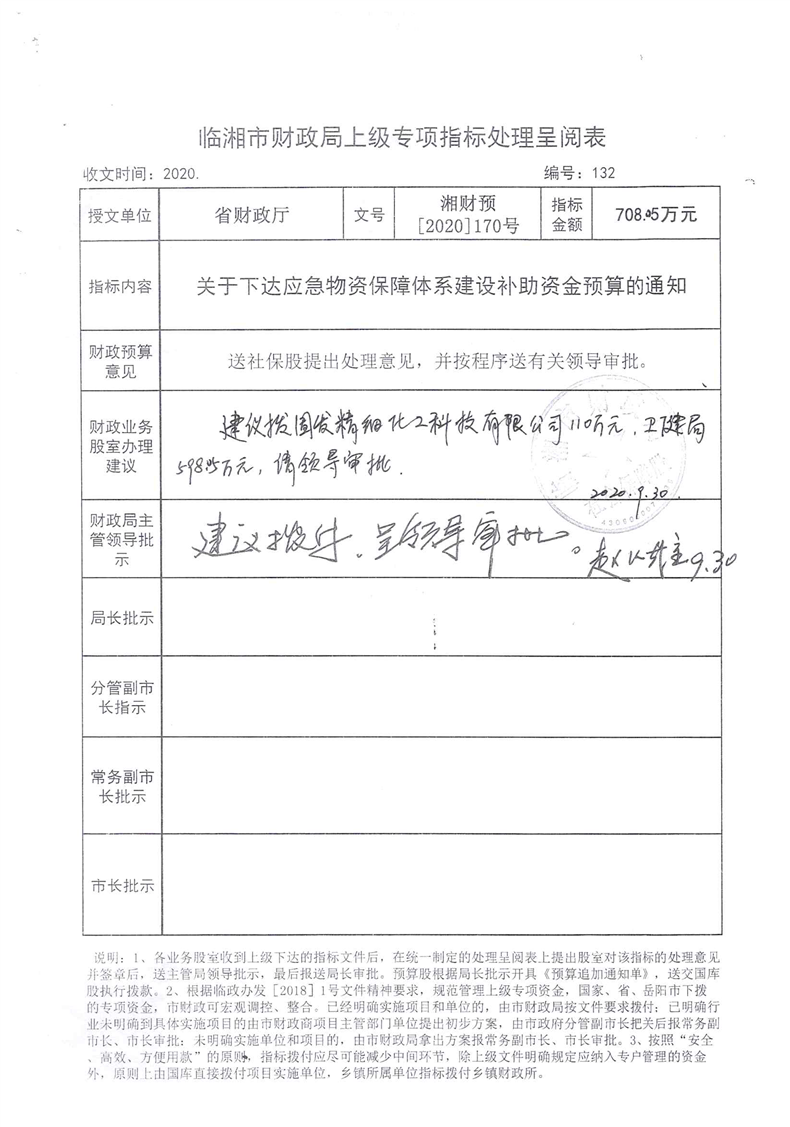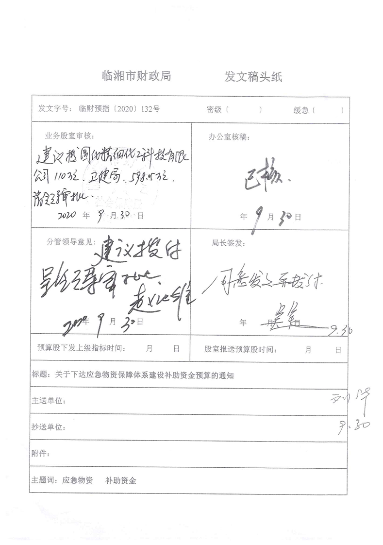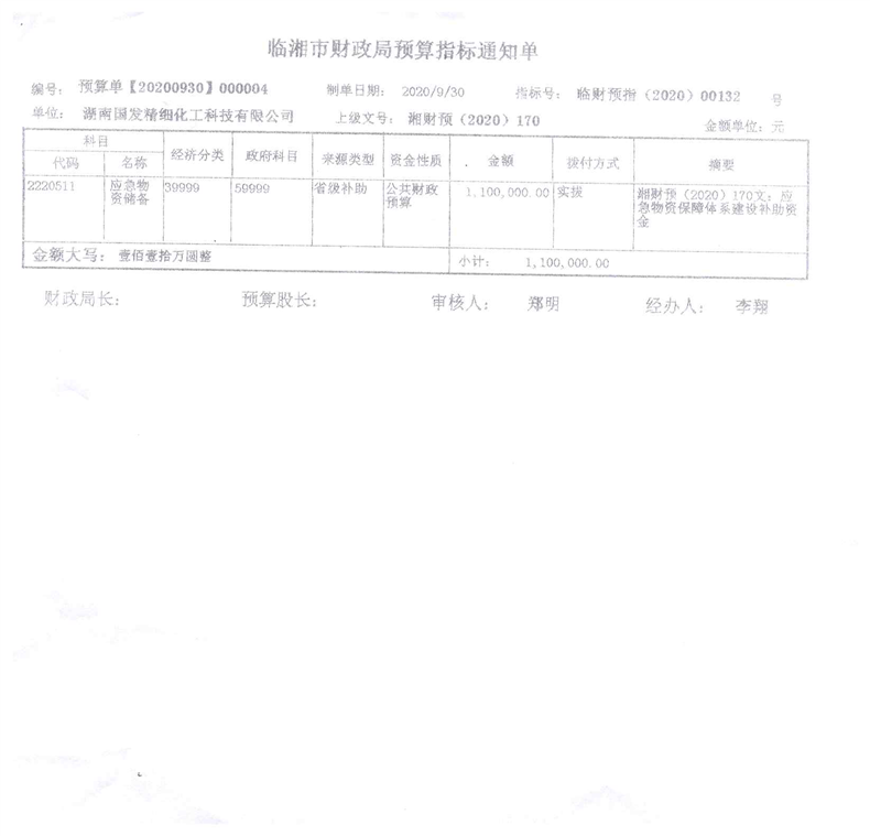 湖南省财政厅关于下达应急物资保障体系建设补助资金预算的通知