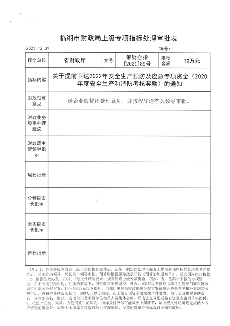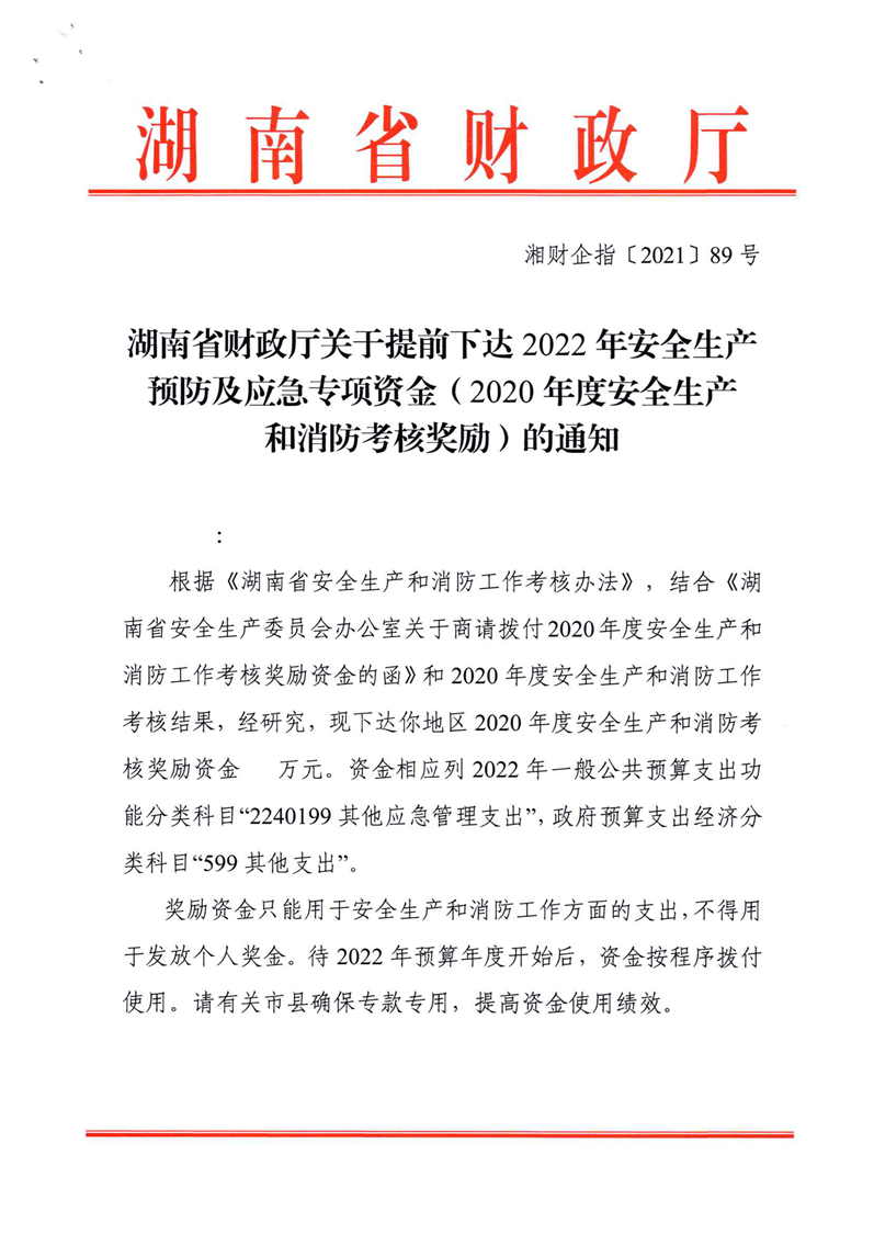 关于提前下达2022年安全生产预防及应急专项资金(2020年度安全生产和消防考核奖励)的通知