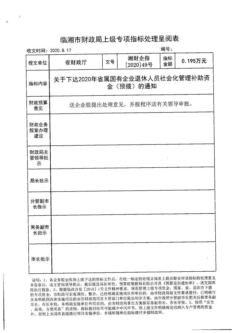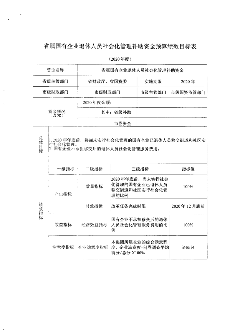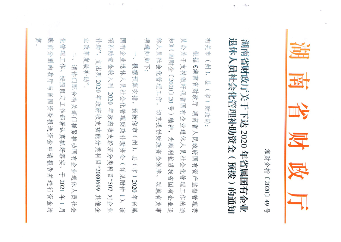 关于下达2020年省属国有企业退休人员社会化管理补助资金(预拨)的通知