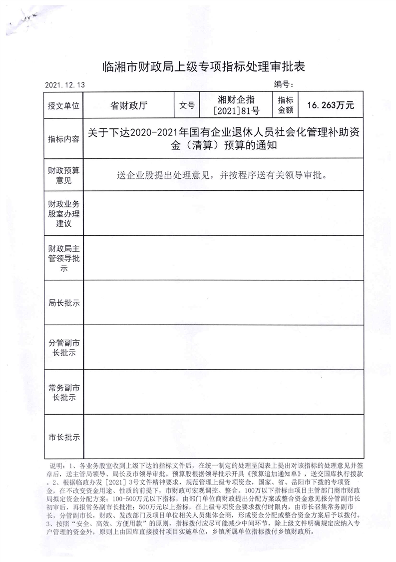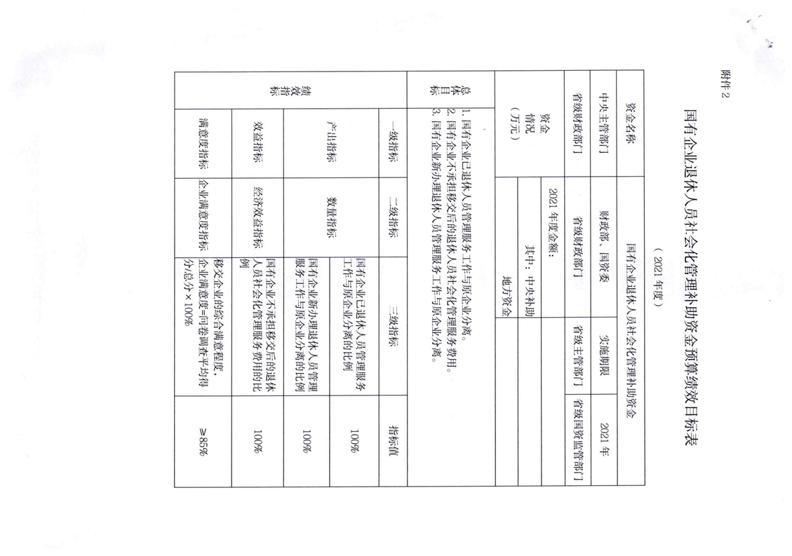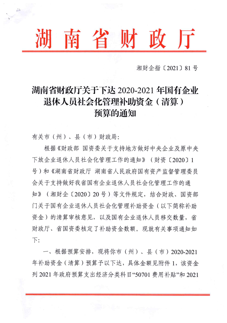 关于下达2020-2021年国有企业退休人员社会化管理补助资金(清算)预算的通知