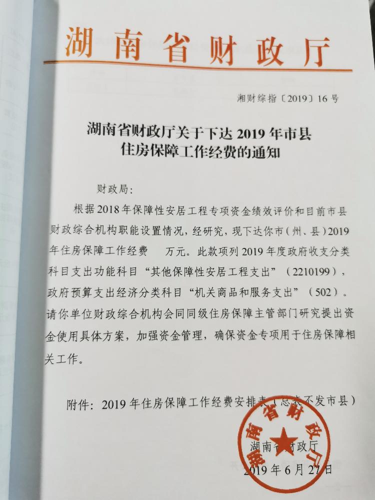 关于下达2019年市县住房保障工作经费的通知
