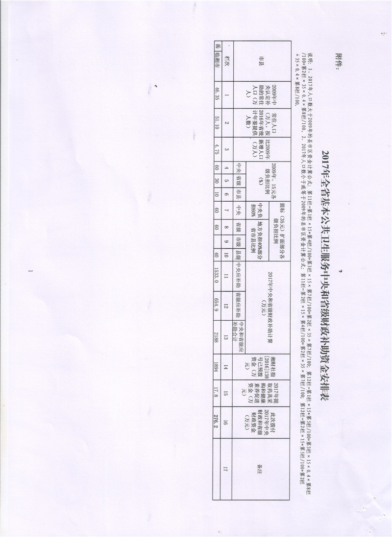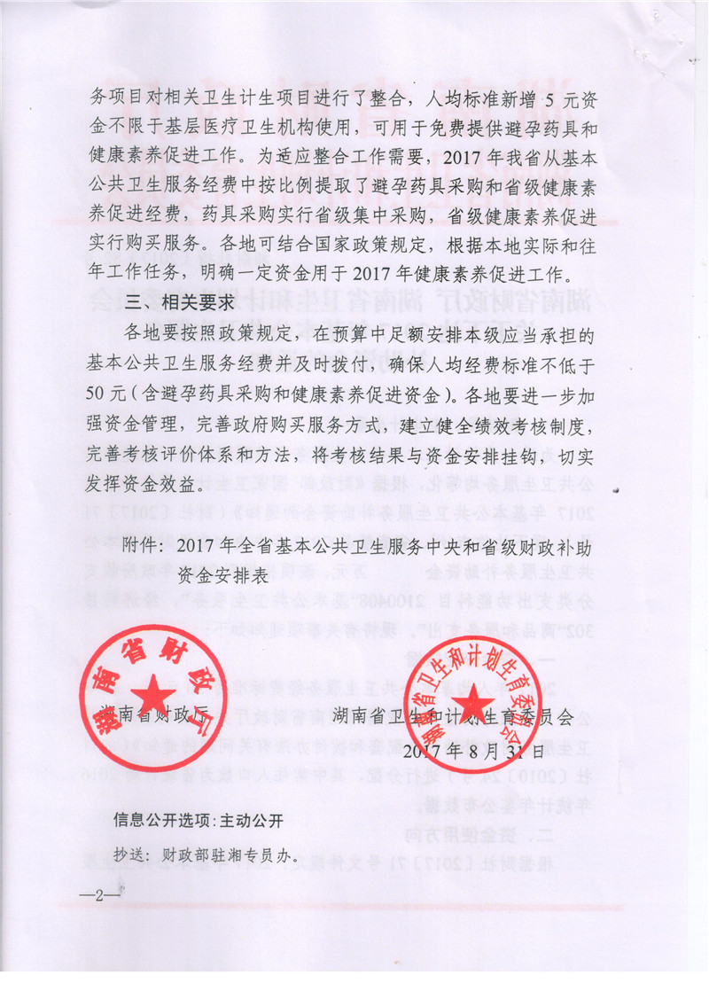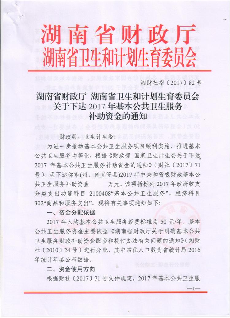湖南省财政厅湖南省卫生和计划生育委员会关于下达2017年基本公共卫生服务补助资金的通知