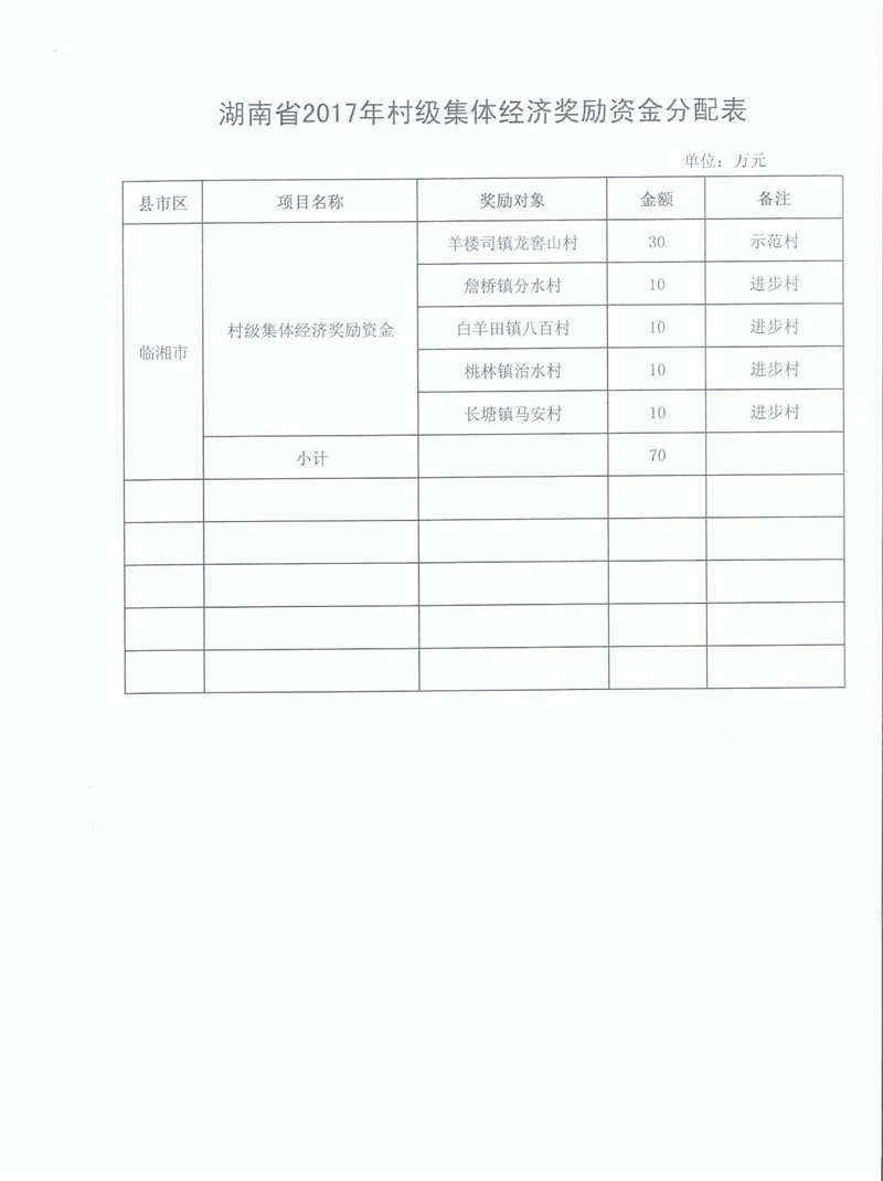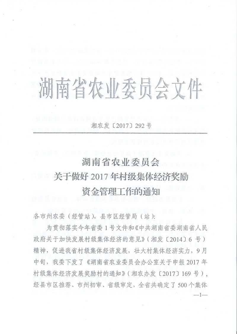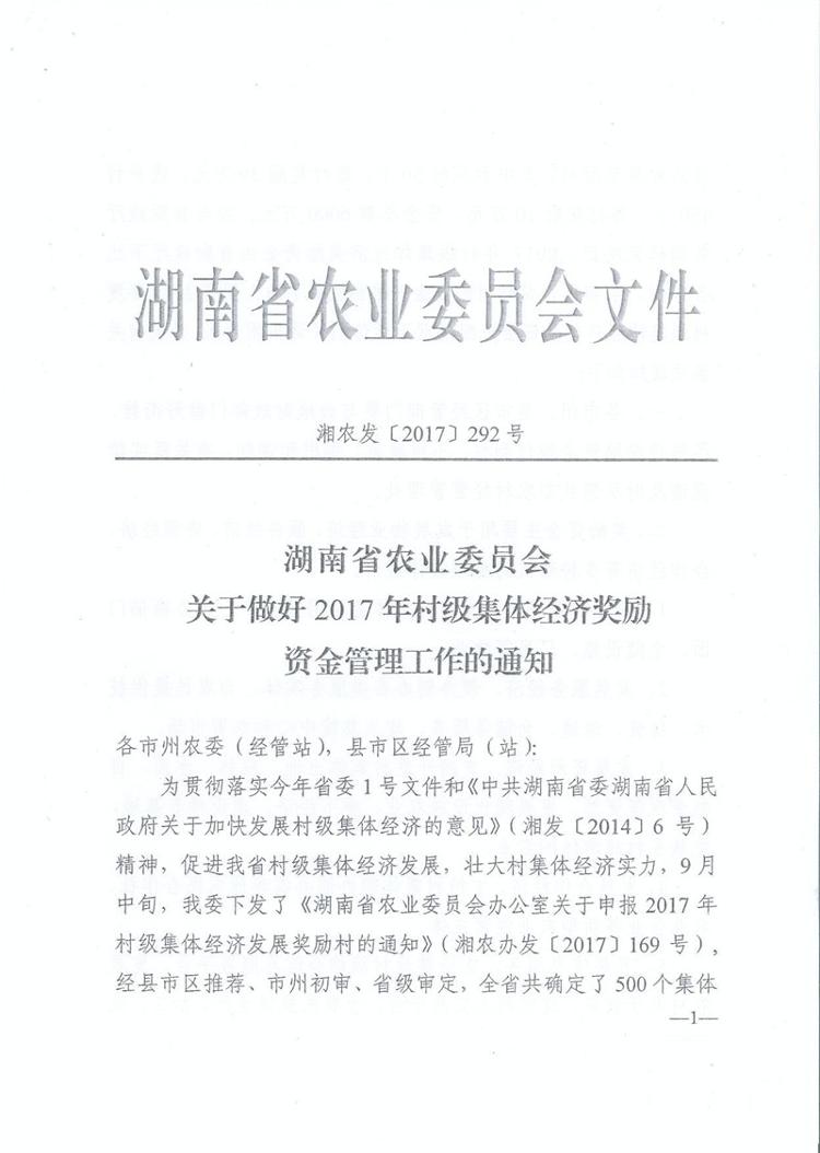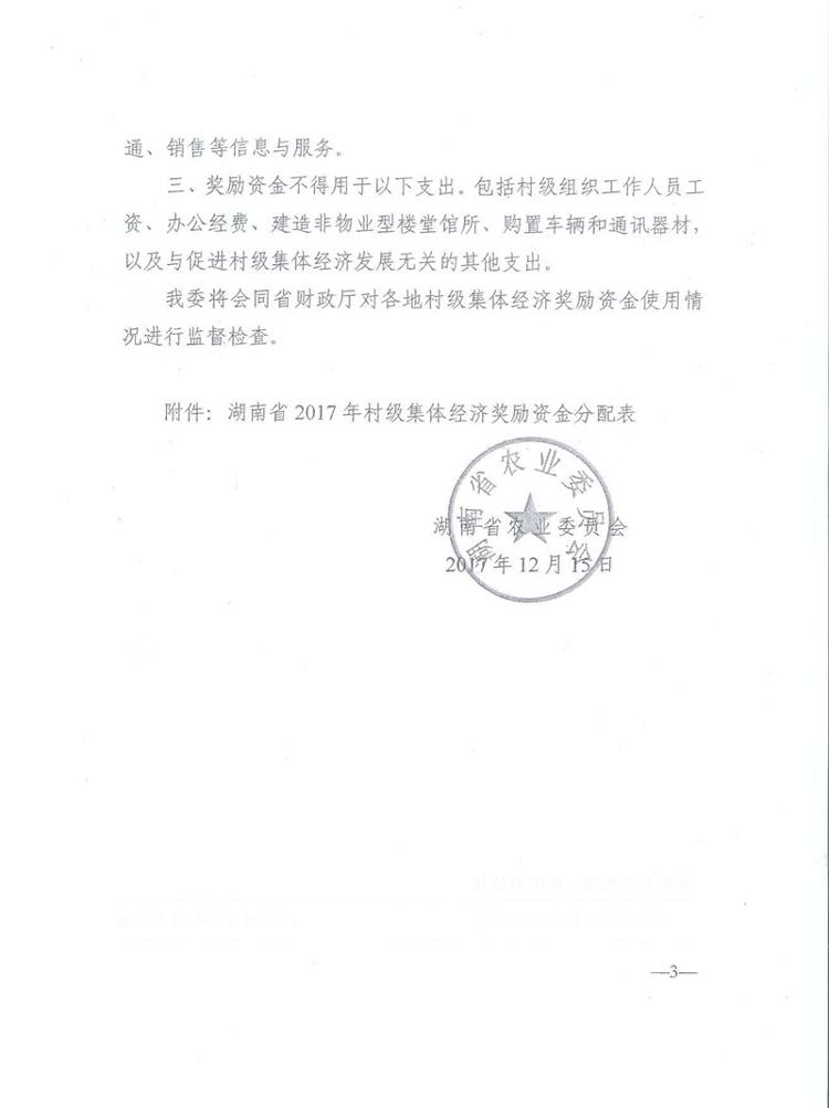 湖南省农业委员会关于做好2017年村级集体经济奖励资金管理工作的通知