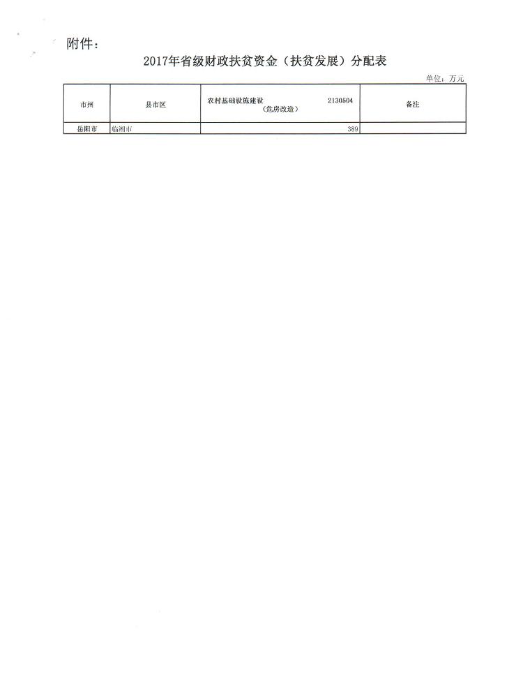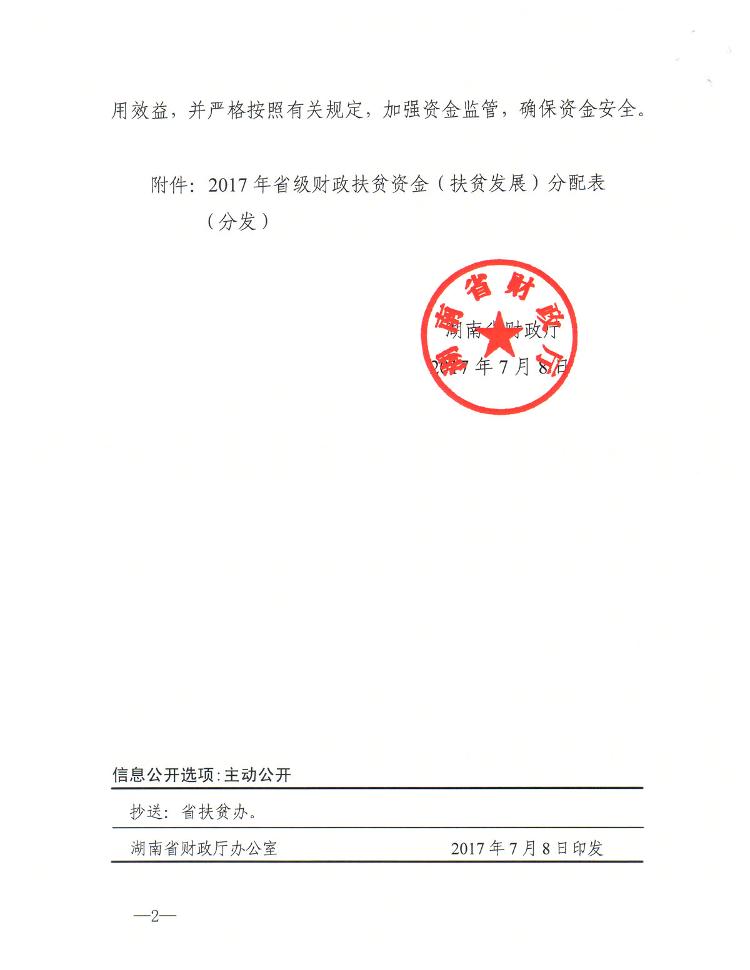湖南省财政厅关于下达2017年省级财政扶贫资金(扶贫发展)的通知(1)