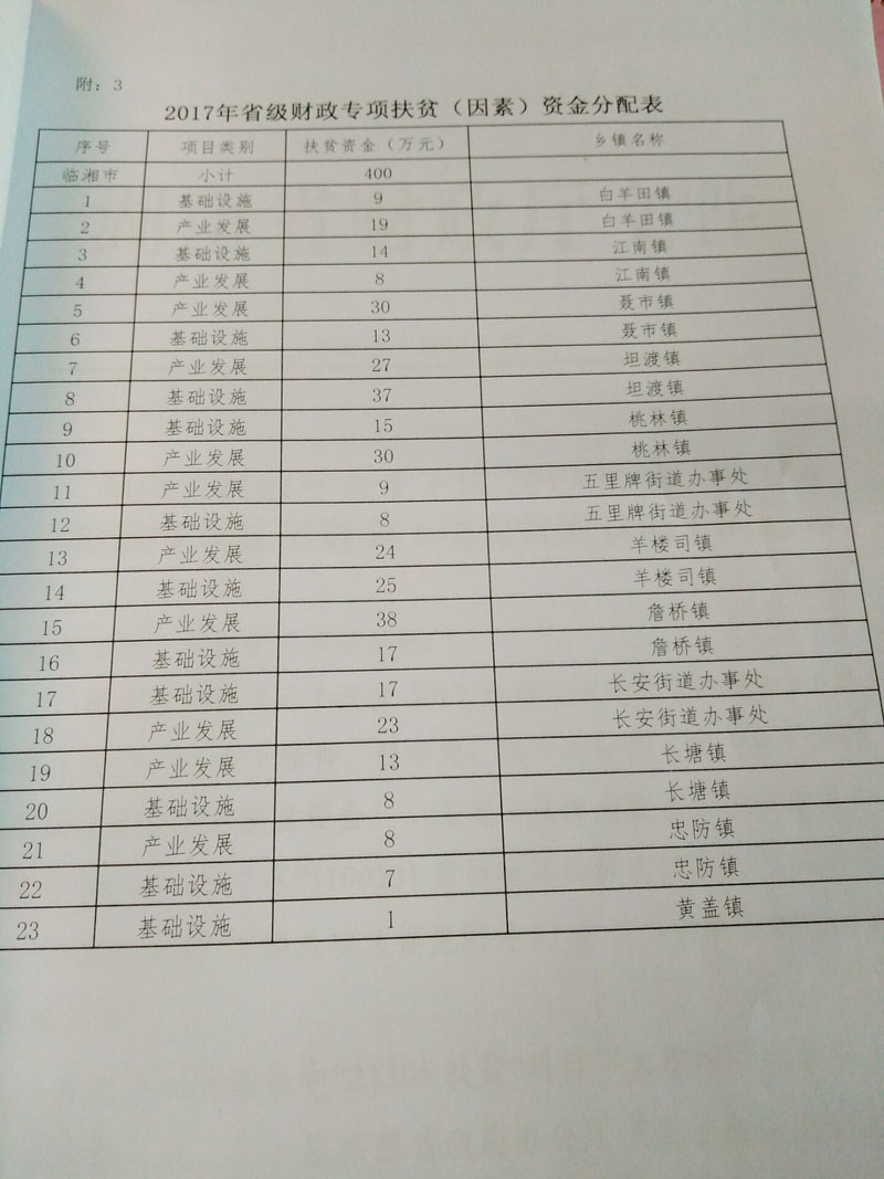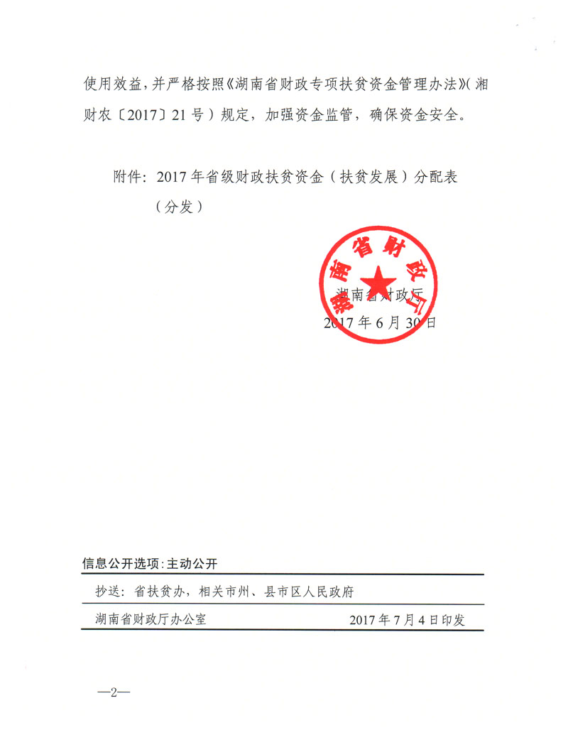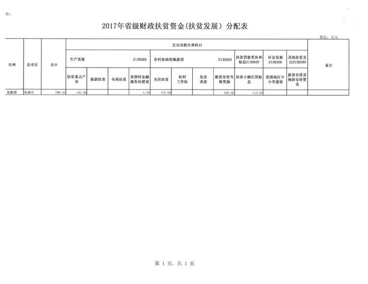 湖南省财政厅关于下达2017年省级财政扶贫资金?(扶贫发展)的通知