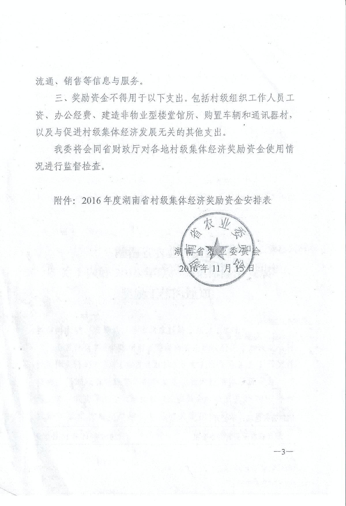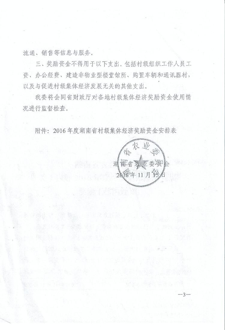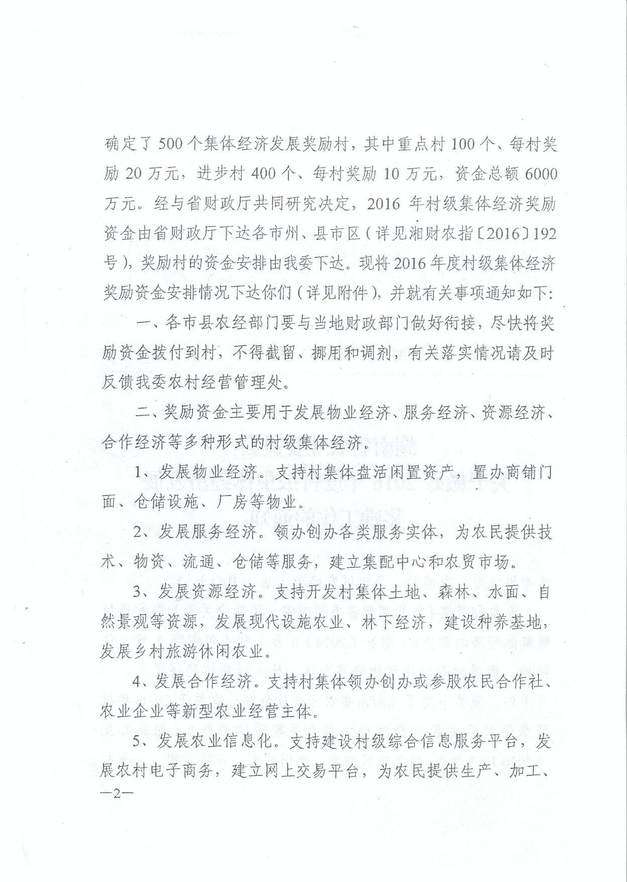 经研究,现安排你市(州、县、单位) 2016 年村级集体经济奖励资金 万元, 该项资金收入请列 2016 年政府收支分类“ 1100299 其他一般性转移支付收入”,支出请列 “ 2130706 对村集体经济组织的补助 ” (支出经济科目 “ 302 商品 和服务支出 ” )。 请尽快按照省农委项目实施方案将资金拨付到位,并加强资金使用监管。 项目 执行中的有关情况, 请及时反馈省财政厅和省农委。