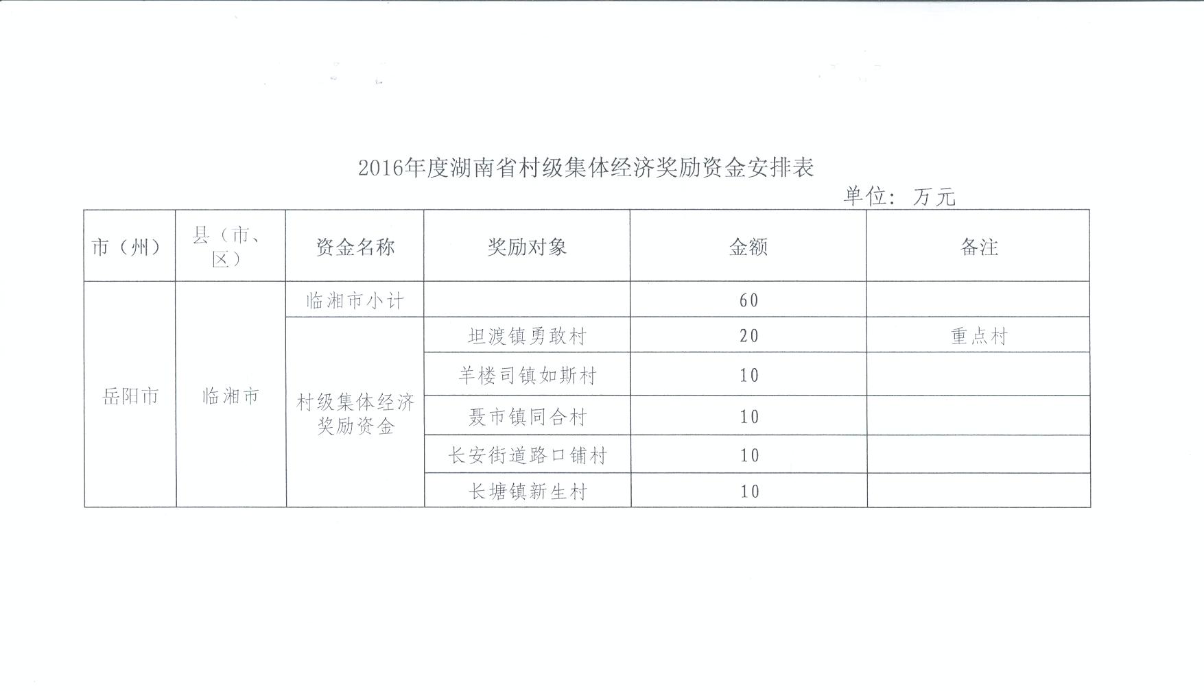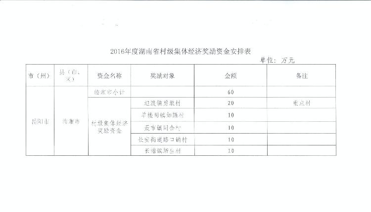 2016年湖南省村级集体经济发展奖励资金安排表(临湘市).xls