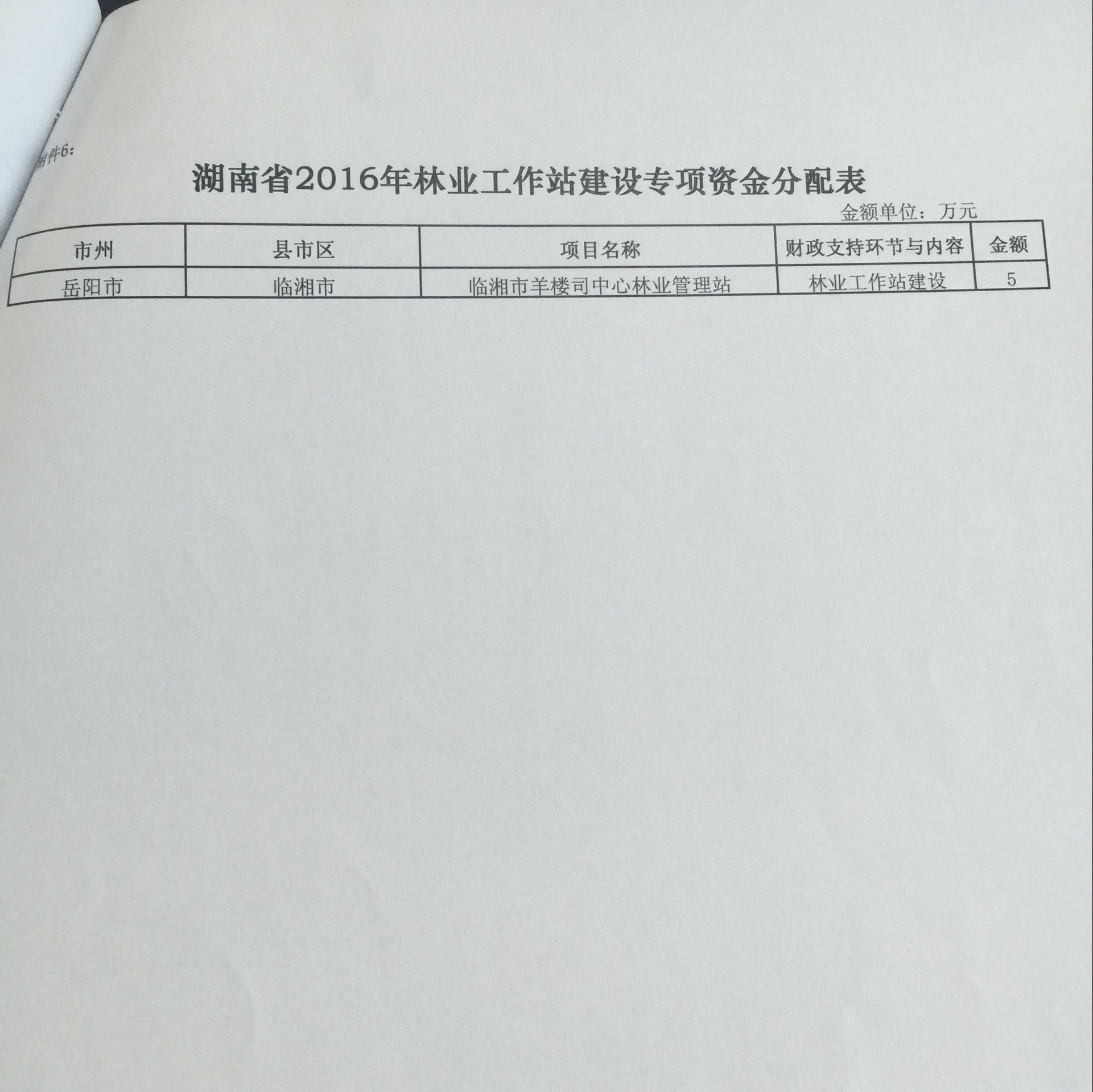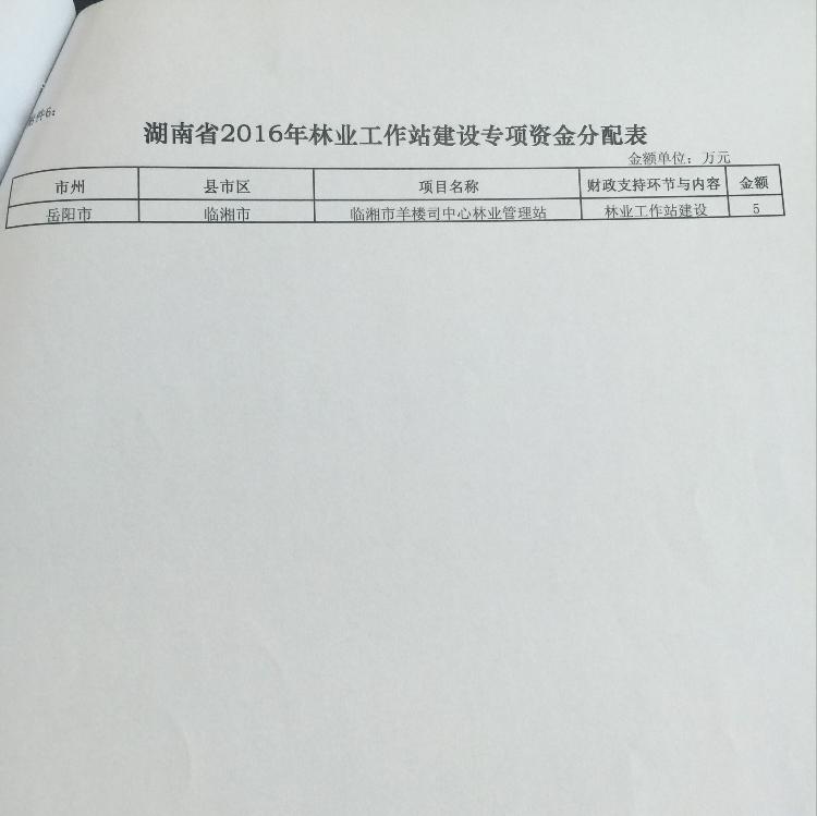 湖南省2016年林业工作站建设专项资金分配表