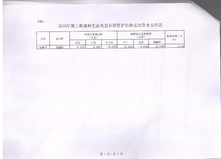 附件: 2016 年第三批森林生态效益补偿基金管护补助资金安排表