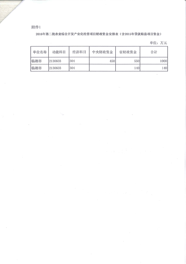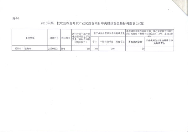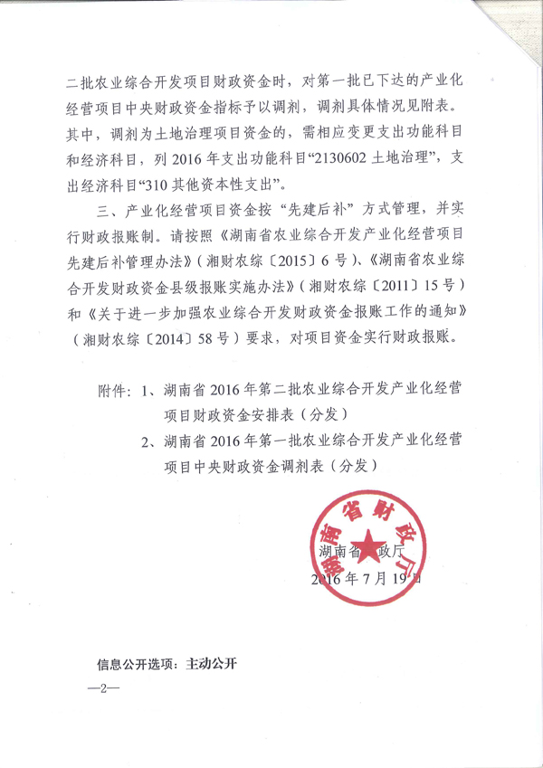 省厅下达2016年第二批农业综合开发产业化经营项目财政资金的通知