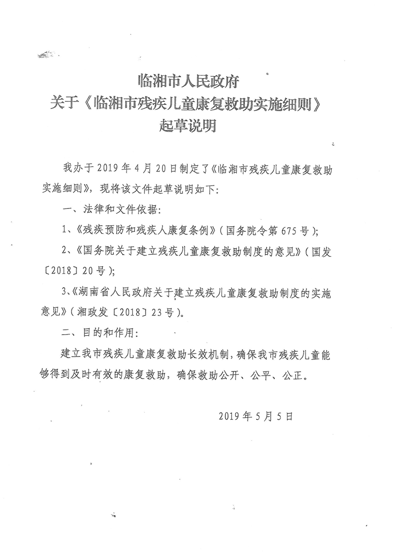关于《临湘市残疾儿童康复救助实施细则》起草说明