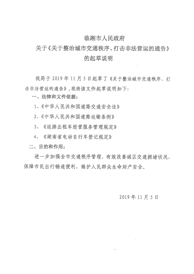 关于《关于整治城市交通秩序、打击非法营运的通告》的起草说明