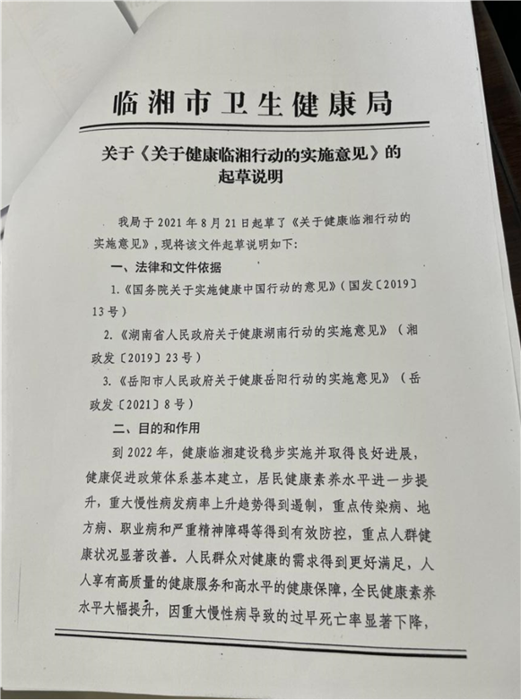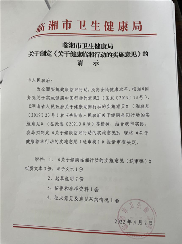 临湘市卫生健康局关于制定《关于健康临湘行动的实施意见》的请示