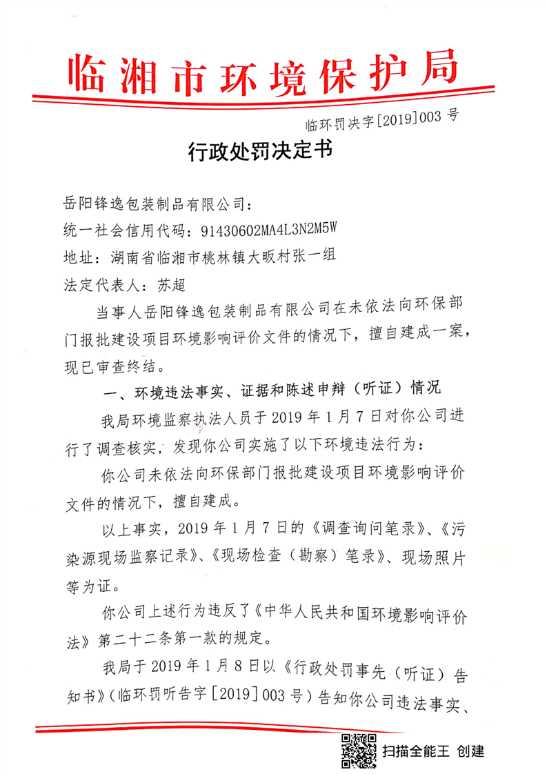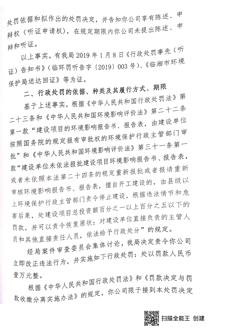 临环罚决字【2019】003号