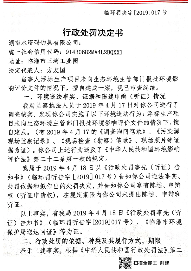 临环罚决字[2019]017号