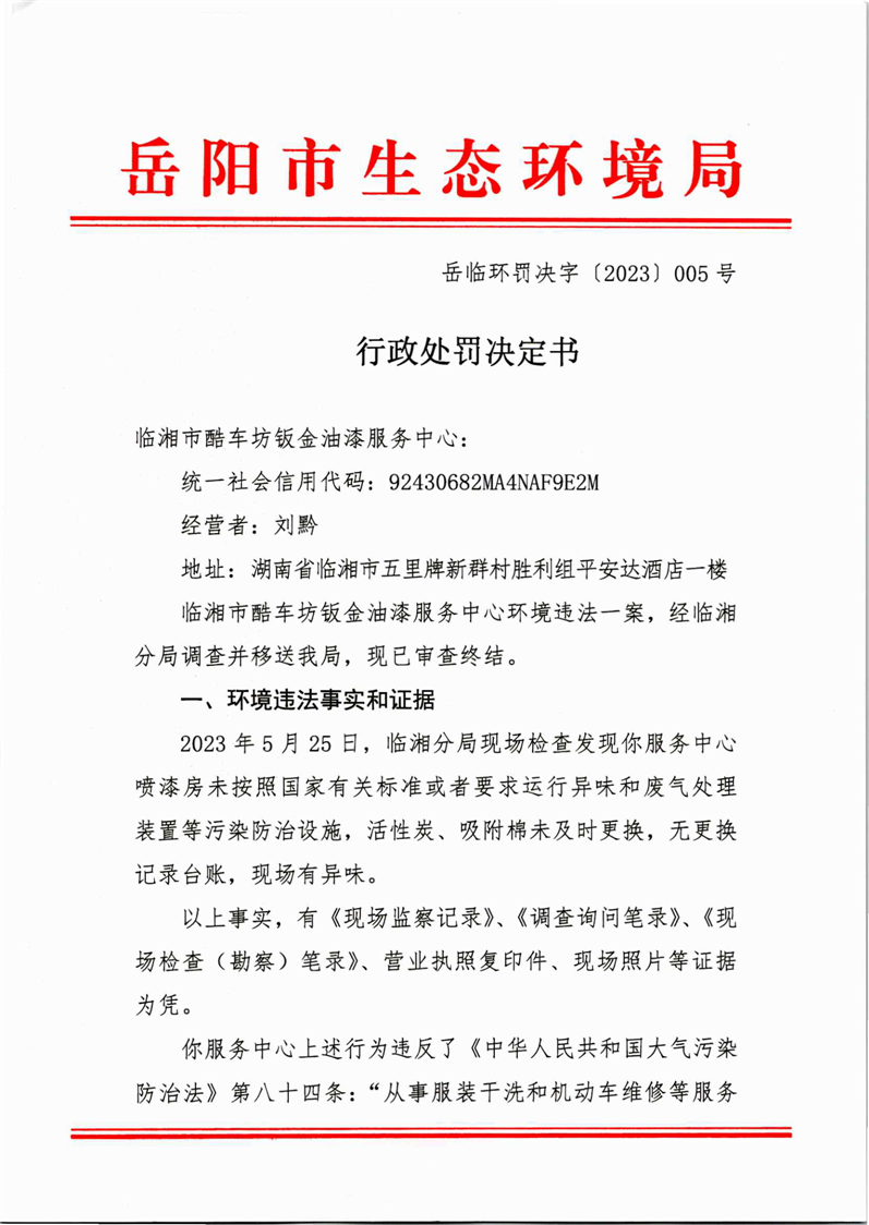 岳临环罚决字[2023]005号