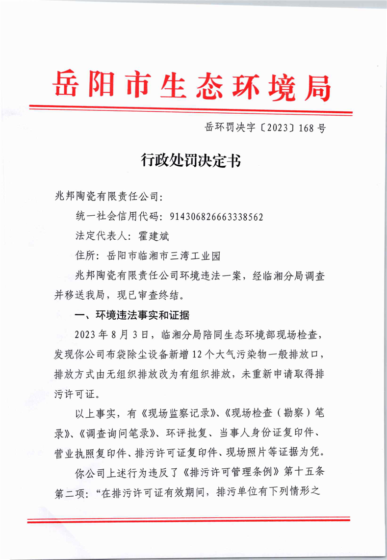 岳环罚决字[2023]168号