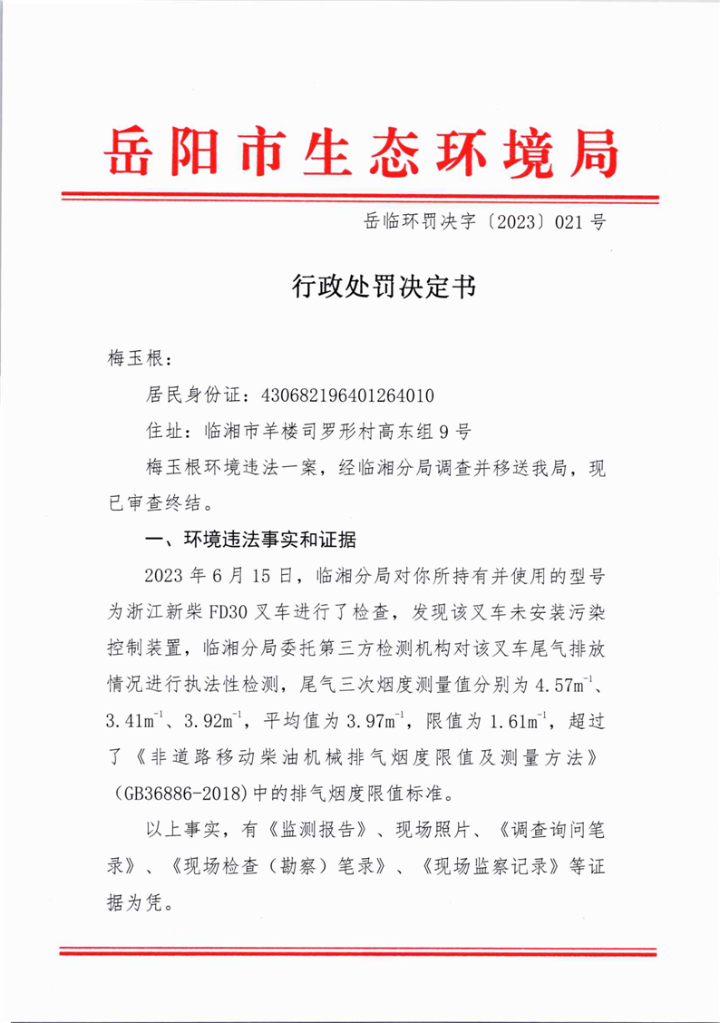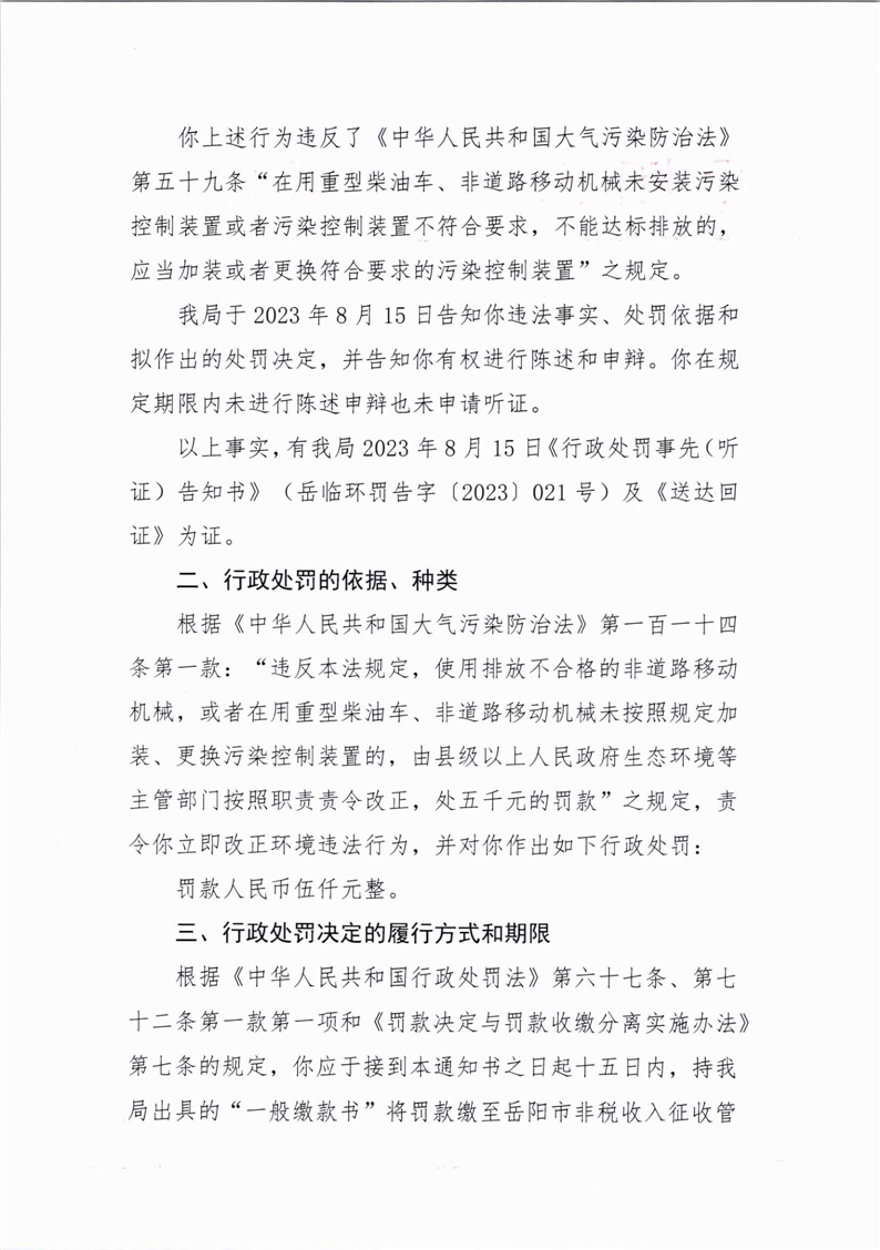 岳临环罚决字[2023]021号