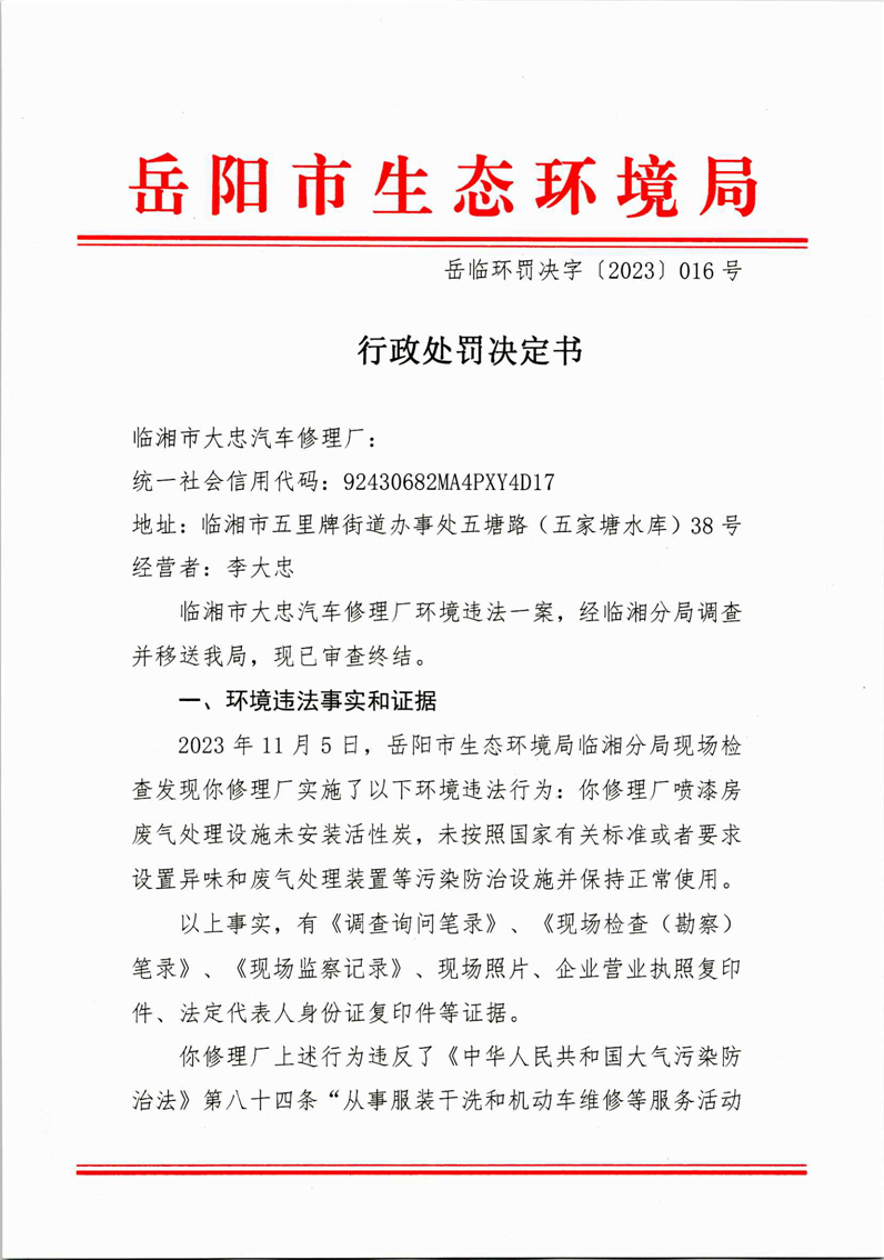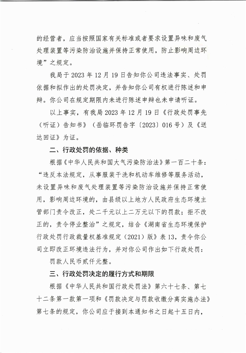 岳临环罚决字〔2023〕016号