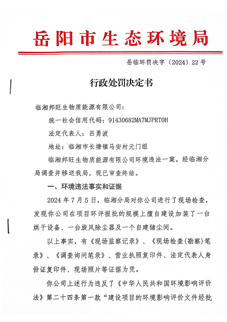 岳临环罚决字[2024]22号