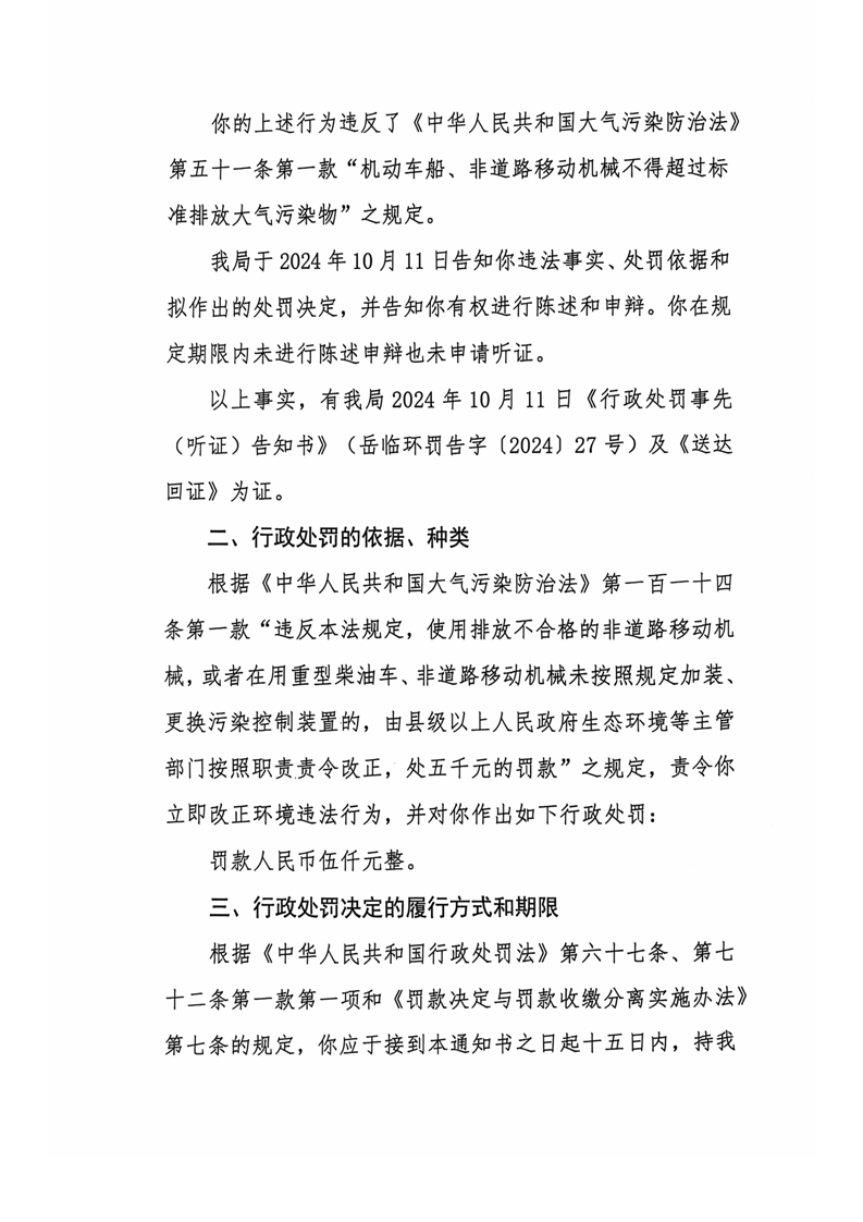岳临环罚决字[2024]27号