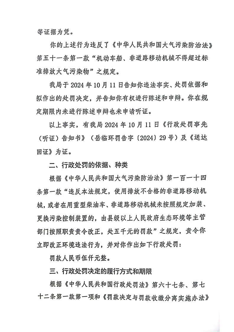 岳临环罚决字[2024]29号