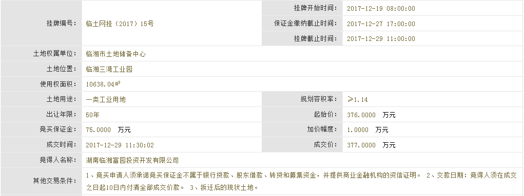 临土网挂(2017)15号成交