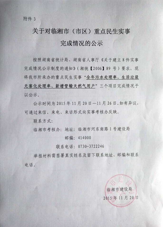 关于对临湘市(市区)重点民生实事完成情况的公示