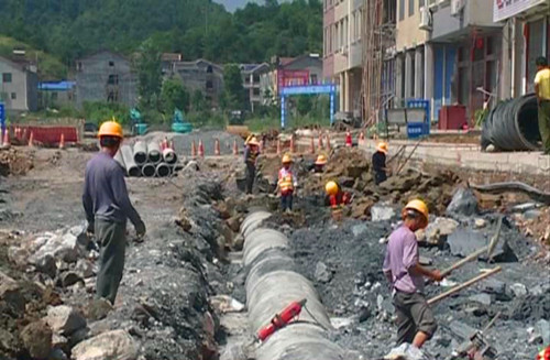 在建设现场记者看到,机械轰鸣,到处是一片热火朝天的施工场景。挖掘机来回穿梭,工人们正紧张有序地忙着道路施共及填埋地下管网。