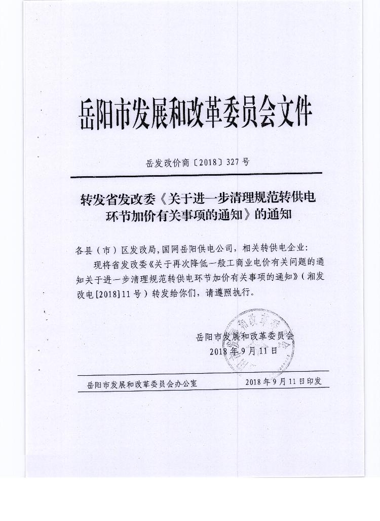 转发省发改委《关于进一步清理规范转供电环节加价有关事项的通知》的通知
