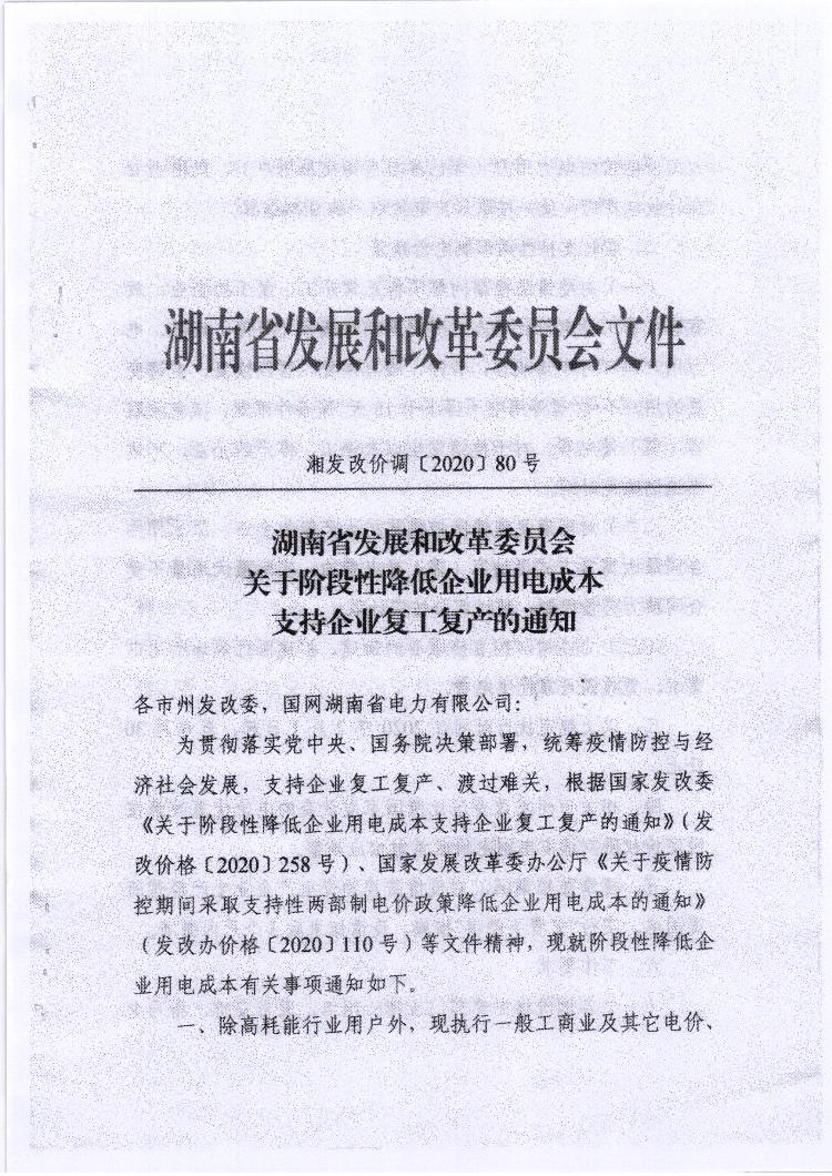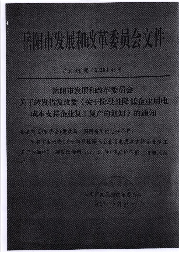 关于转发岳阳市发展和改革委员会《关于转发省发改委《关于阶段性降低企业用电成本支持企业复工复产的通知》的通知》的通知