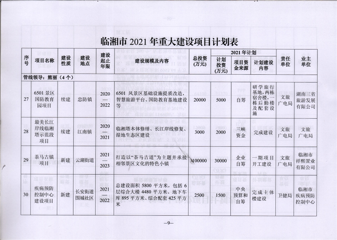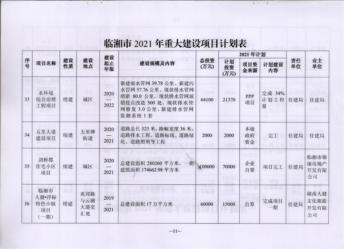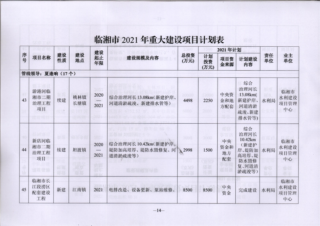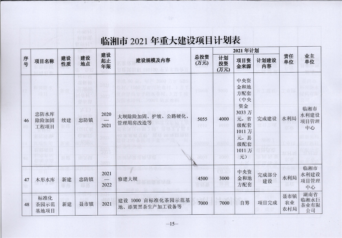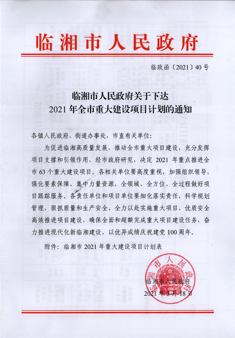 临湘市人民政府关于下达2021年度全市重大建设项目计划的通知
