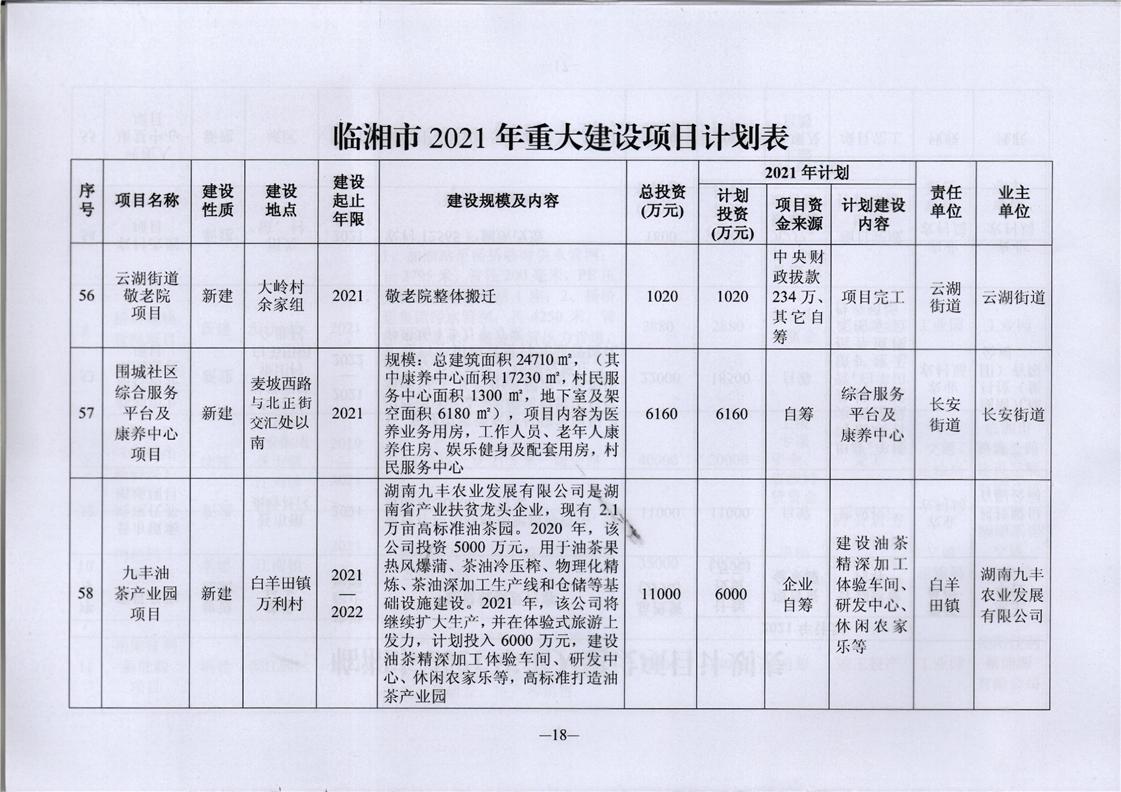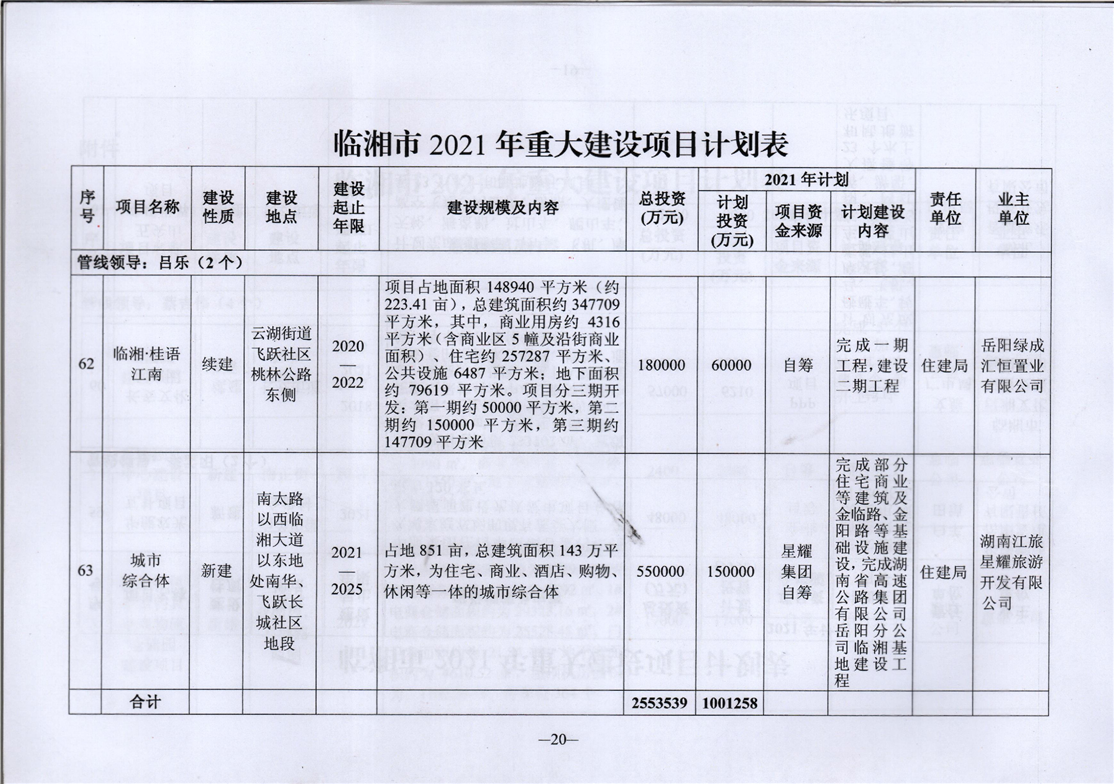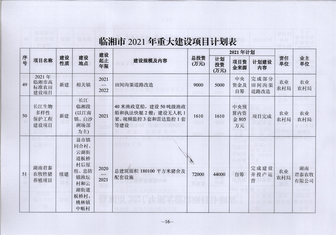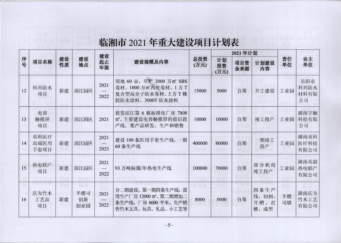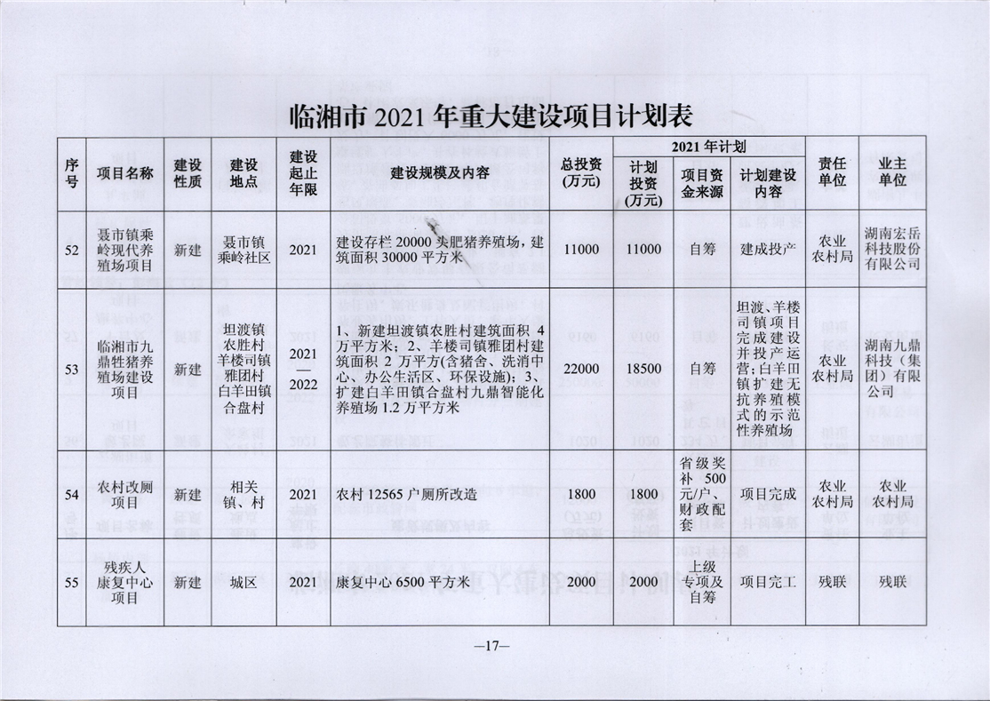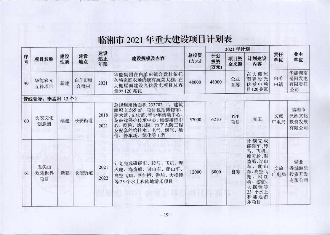 临湘市人民政府关于下达2021年度全市重大建设项目计划的通知