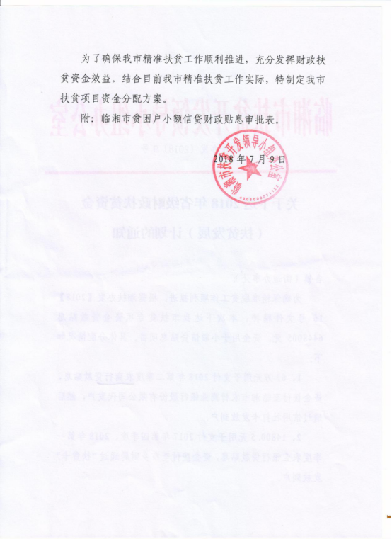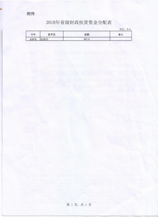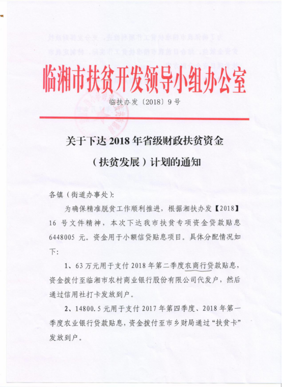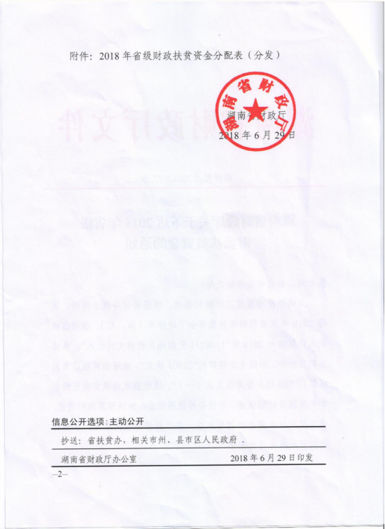 湖南省财政厅关于下达2018年省级财政扶贫资金的通知