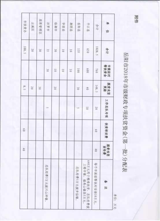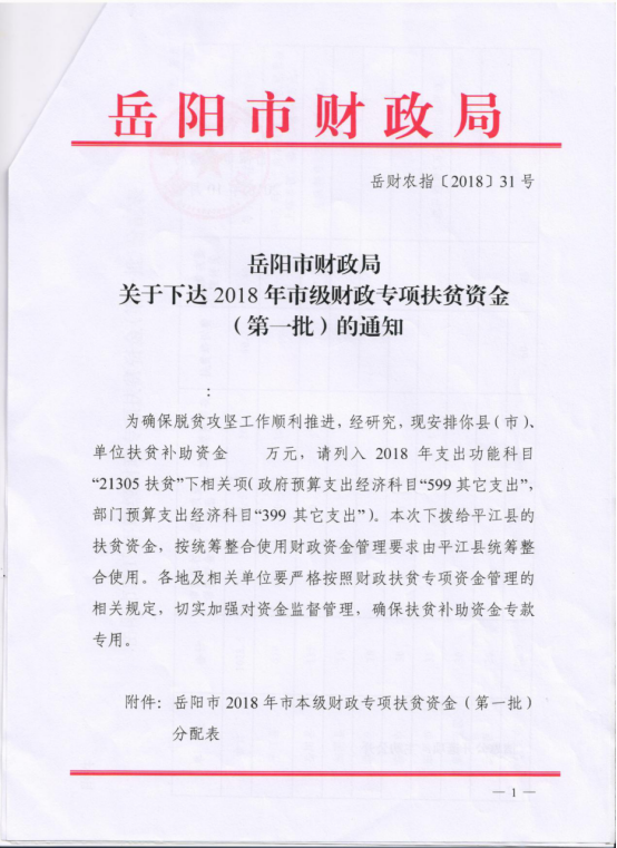 岳阳市财政局关于下达2018年市级财政扶贫资金(第一批)的通知