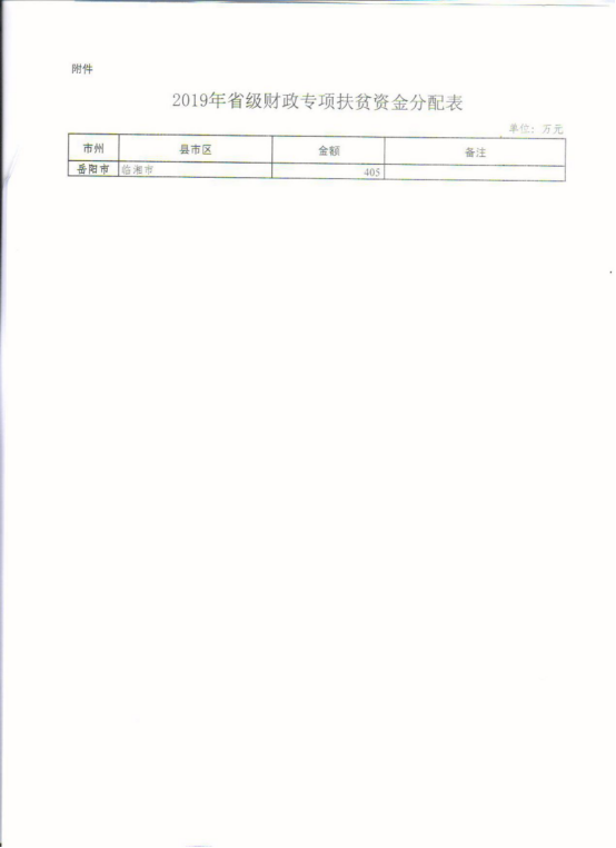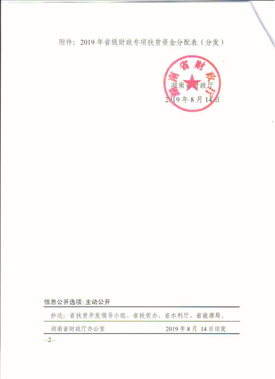 湖南省财政厅关于下达2019年省级财政专项扶贫资金的通知