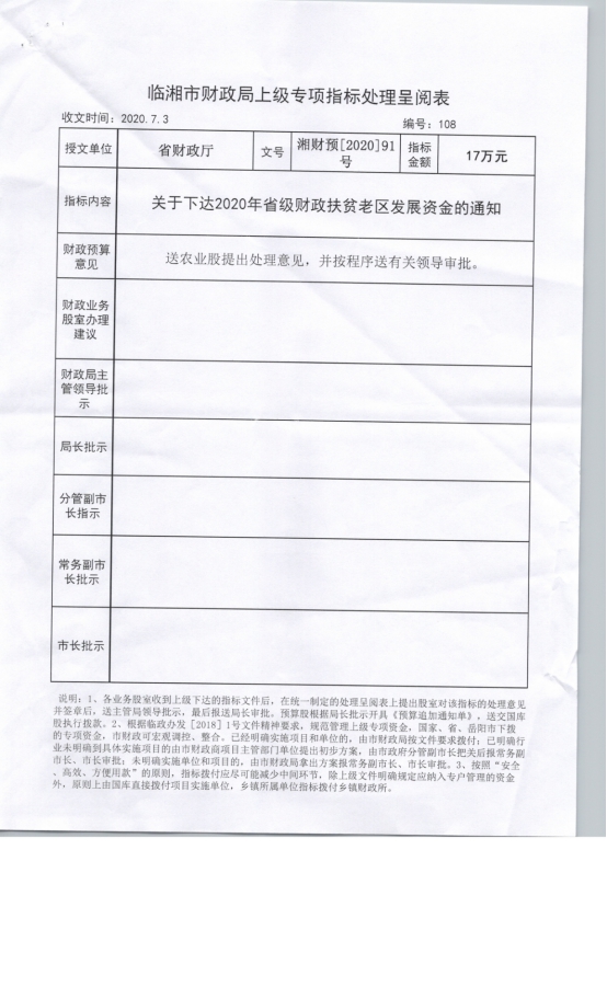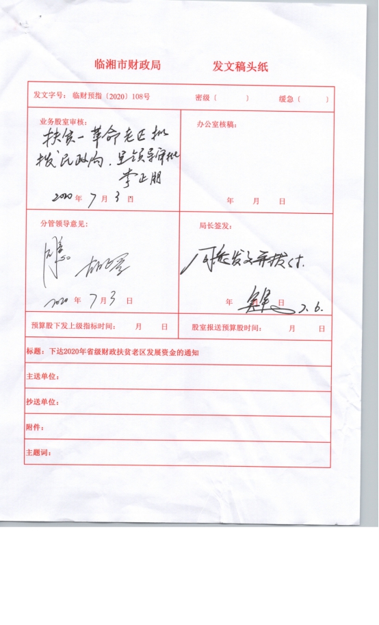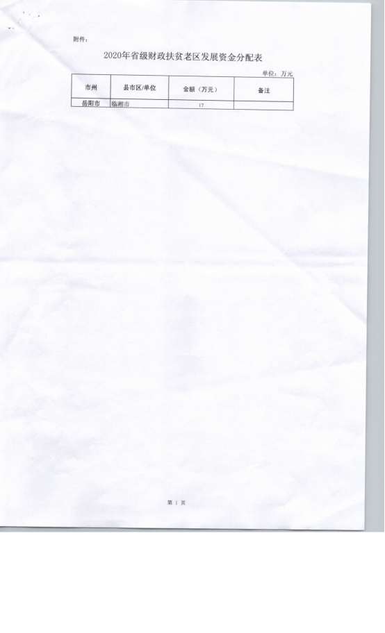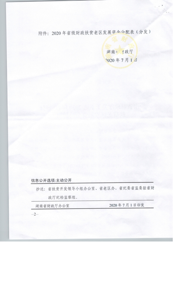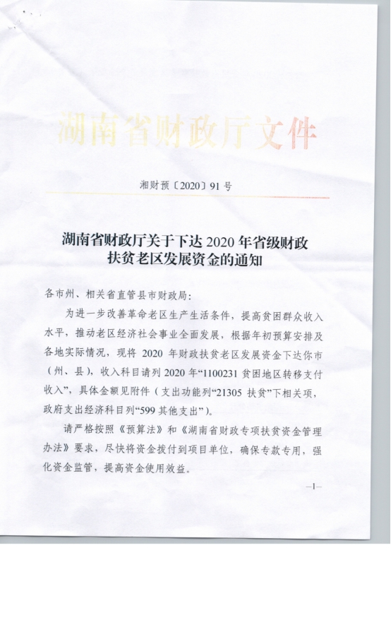 关于下达2020年省级财政扶贫老区发展资金 湘财预【2020】91号