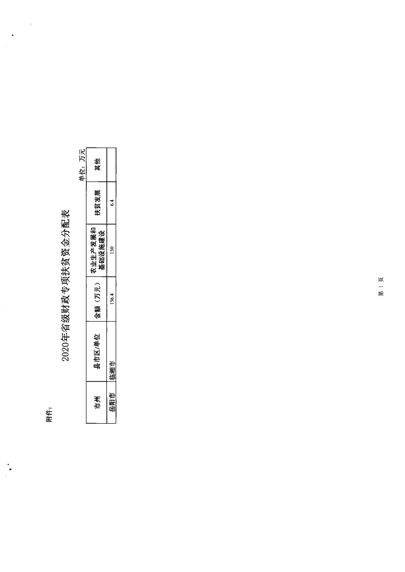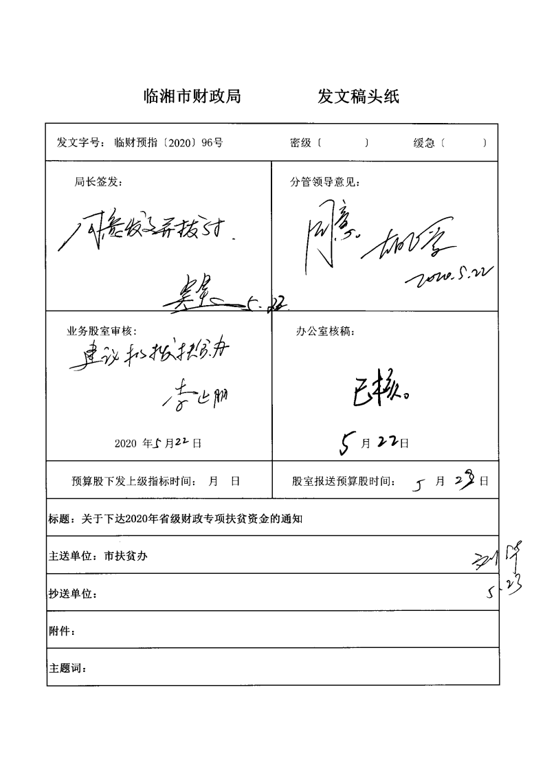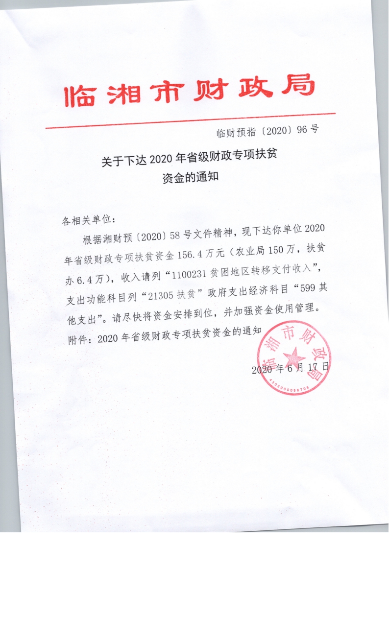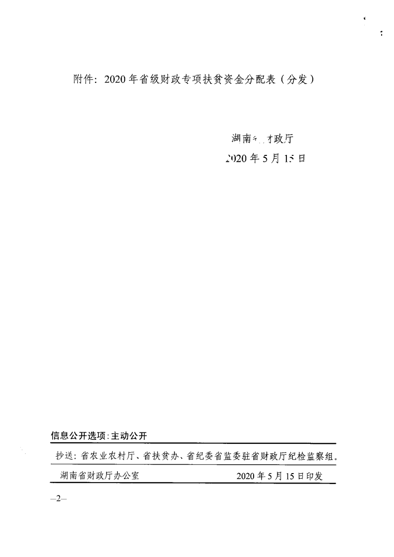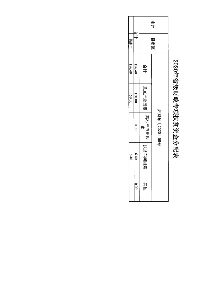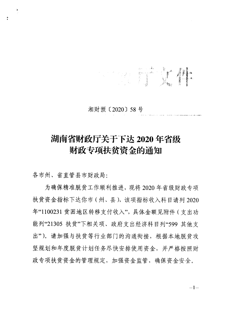 关于下达2020年省级财政专项扶贫资金 湘财预(2020)58号