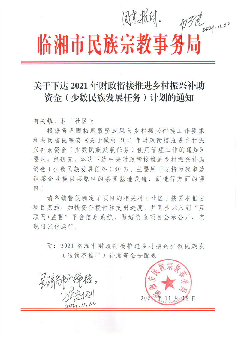 关于下达2021年财政衔接推进乡村振兴补助资金(少数民族发展任务)计划的通知